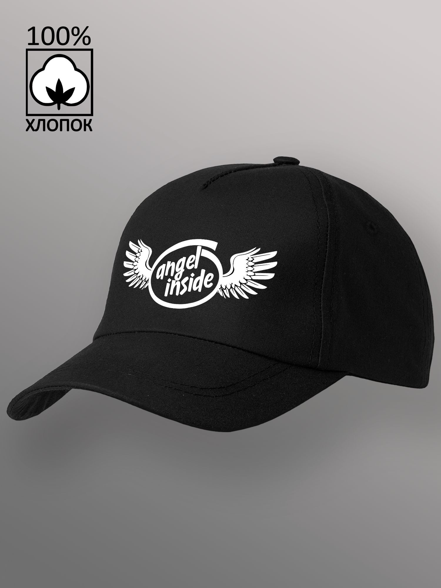 Бейсболка унисекс чёрная с принтом angel inside ангел крылья однотонная изготовлена из качественного 100% хлопка. Плотный велюр не выцветает и не деформируется со временем, а качественно прошитые детали гарантируют, что бейсболка мужская чёрная прослужит и будет радовать вас не один сезон. Кепка унисекс подходит, как мужчинам, так и женщинам, а регулируемая застёжка с металлическим клипсом позволит отрегулировать размер для детей и подростков. Бейсболка женская чёрная так же подходит для мальчика и для девочки. Обшивной люверс не нагревается на солнце, позволяя коже головы дышать. Бейсболка женская летняя, зимняя, демисезонная и подходит для любой погоды, обеспечивая надёжную защиту. Прочный козырёк защитит вас от солнца, дождя или снега. Кепка женская подходит как для ежедневной носки, так и для занятия спортом. Комфортная форма бейсболки позволяет занимается бегом, теннисом, ходьбой, волейболом, баскетболом, футболом и даже конным спортом, не опасаясь, что бейсболка для мальчика слетит с головы. Так же кепка мужская с оригинальным авторским принтом может стать незабываемым подарком для ваших друзей и близких. Порадуйте своих родственников качественной бейсболкой с прикольной надписью или ярким рисунком.