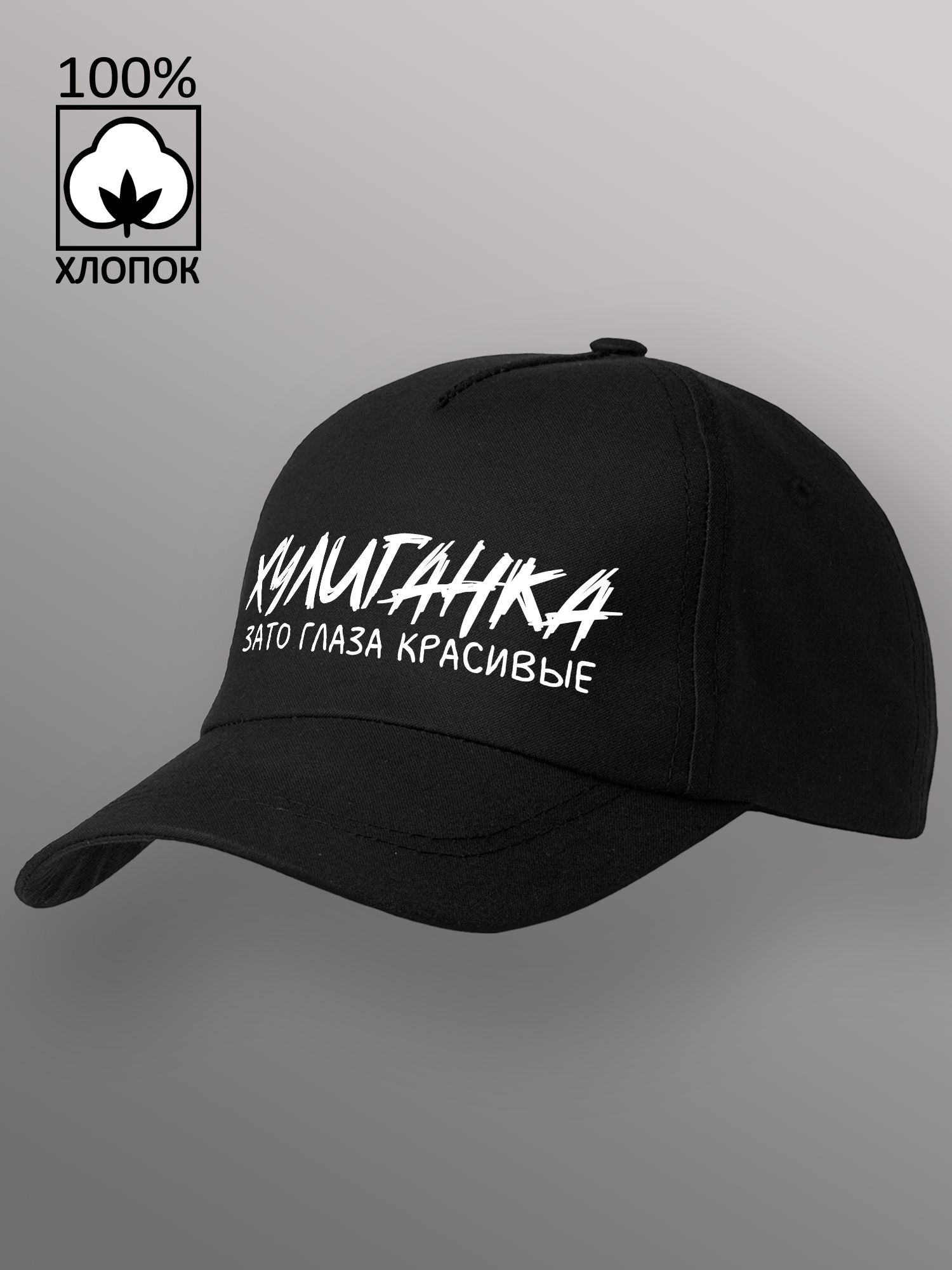 Бейсболка унисекс чёрная с принтом Хулиганка зато глаза красивые однотонная изготовлена из качественного 100% хлопка. Плотный велюр не выцветает и не деформируется со временем, а качественно прошитые детали гарантируют, что бейсболка мужская чёрная прослужит и будет радовать вас не один сезон. Кепка унисекс подходит, как мужчинам, так и женщинам, а регулируемая застёжка с металлическим клипсом позволит отрегулировать размер для детей и подростков. Бейсболка женская чёрная так же подходит для мальчика и для девочки. Обшивной люверс не нагревается на солнце, позволяя коже головы дышать. Бейсболка женская летняя, зимняя, демисезонная и подходит для любой погоды, обеспечивая надёжную защиту. Прочный козырёк защитит вас от солнца, дождя или снега. Кепка женская подходит как для ежедневной носки, так и для занятия спортом. Комфортная форма бейсболки позволяет занимается бегом, теннисом, ходьбой, волейболом, баскетболом, футболом и даже конным спортом, не опасаясь, что бейсболка для мальчика слетит с головы. Так же кепка мужская с оригинальным авторским принтом может стать незабываемым подарком для ваших друзей и близких. Порадуйте своих родственников качественной бейсболкой с прикольной надписью или ярким рисунком.