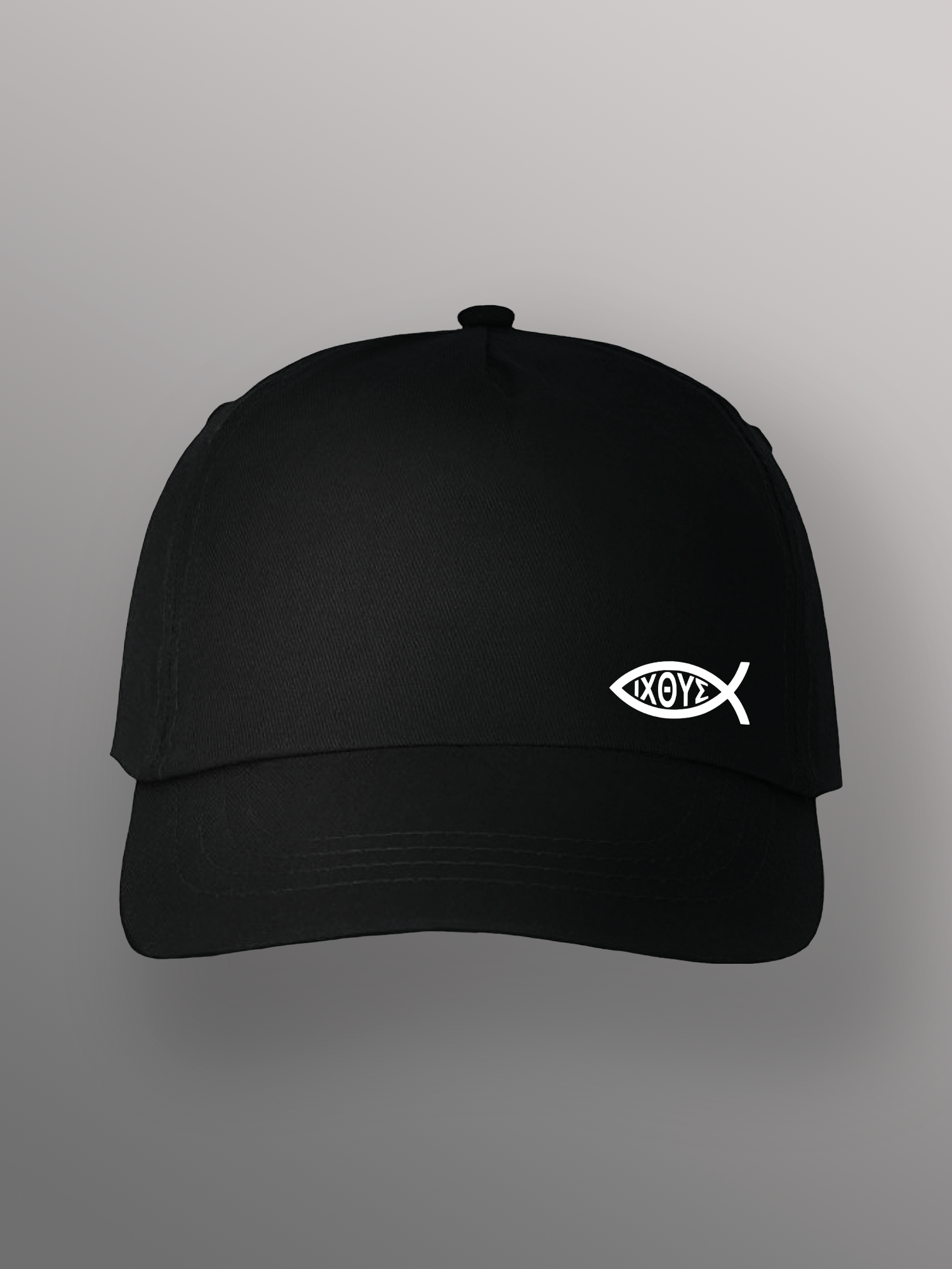 Бейсболка унисекс чёрная с принтом Иисус символ веры рыба Ихтис днотонная изготовлена из качественного 100% хлопка. Плотный велюр не выцветает и не деформируется со временем, а качественно прошитые детали гарантируют, что бейсболка мужская чёрная прослужит и будет радовать вас не один сезон. Кепка унисекс подходит, как мужчинам, так и женщинам, а регулируемая застёжка с металлическим клипсом позволит отрегулировать размер для детей и подростков. Бейсболка женская чёрная так же подходит для мальчика и для девочки. Обшивной люверс не нагревается на солнце, позволяя коже головы дышать. Бейсболка женская летняя, зимняя, демисезонная и подходит для любой погоды, обеспечивая надёжную защиту. Прочный козырёк защитит вас от солнца, дождя или снега. Кепка женcкая подходит как для ежедневной носки, так и для занятия спортом. Комфортная форма бейсболки позволяет занимается бегом, теннисом, ходьбой, волейболом, баскетболом, футболом и даже конным спортом, не опасаясь, что бейсболка для мальчика слетит с головы. Так же кепка мужская с оригинальным авторским принтом может стать незабываемым подарком для ваших друзей и близких. Порадуйте своих родственников качественной бейсболкой с прикольной надписью или ярким рисунком.