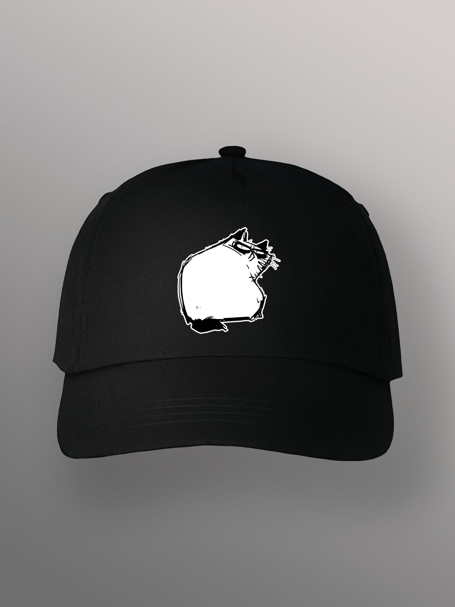 Бейсболка унисекс чёрная с принтом Недовольный котик однотонная изготовлена из качественного 100% хлопка. Плотный велюр не выцветает и не деформируется со временем, а качественно прошитые детали гарантируют, что бейсболка мужская чёрная прослужит и будет радовать вас не один сезон. Кепка унисекс подходит, как мужчинам, так и женщинам, а регулируемая застёжка с металлическим клипсом позволит отрегулировать размер для детей и подростков. Бейсболка женская чёрная так же подходит для мальчика и для девочки. Обшивной люверс не нагревается на солнце, позволяя коже головы дышать. Бейсболка женская летняя, зимняя, демисезонная и подходит для любой погоды, обеспечивая надёжную защиту. Прочный козырёк защитит вас от солнца, дождя или снега. Кепка женская подходит как для ежедневной носки, так и для занятия спортом. Комфортная форма бейсболки позволяет занимается бегом, теннисом, ходьбой, волейболом, баскетболом, футболом и даже конным спортом, не опасаясь, что бейсболка для мальчика слетит с головы. Так же кепка мужская с оригинальным авторским принтом может стать незабываемым подарком для ваших друзей и близких. Порадуйте своих родственников качественной бейсболкой с прикольной надписью или ярким рисунком.