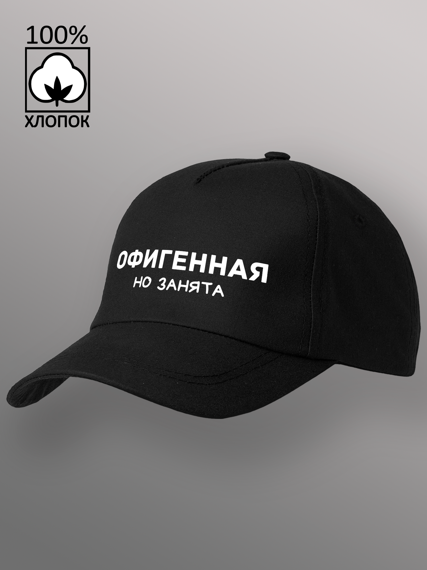 Бейсболка унисекс чёрная с принтом офигенная но занята однотонная изготовлена из качественного 100% хлопка. Плотный велюр не выцветает и не деформируется со временем, а качественно прошитые детали гарантируют, что бейсболка мужская чёрная прослужит и будет радовать вас не один сезон. Кепка унисекс подходит, как мужчинам, так и женщинам, а регулируемая застёжка с металлическим клипсом позволит отрегулировать размер для детей и подростков. Бейсболка женская чёрная так же подходит для мальчика и для девочки. Обшивной люверс не нагревается на солнце, позволяя коже головы дышать. Бейсболка женская летняя, зимняя, демисезонная и подходит для любой погоды, обеспечивая надёжную защиту. Прочный козырёк защитит вас от солнца, дождя или снега. Кепка женская подходит как для ежедневной носки, так и для занятия спортом. Комфортная форма бейсболки позволяет занимается бегом, теннисом, ходьбой, волейболом, баскетболом, футболом и даже конным спортом, не опасаясь, что бейсболка для мальчика слетит с головы. Так же кепка мужская с оригинальным авторским принтом может стать незабываемым подарком для ваших друзей и близких. Порадуйте своих родственников качественной бейсболкой с прикольной надписью или ярким рисунком.
