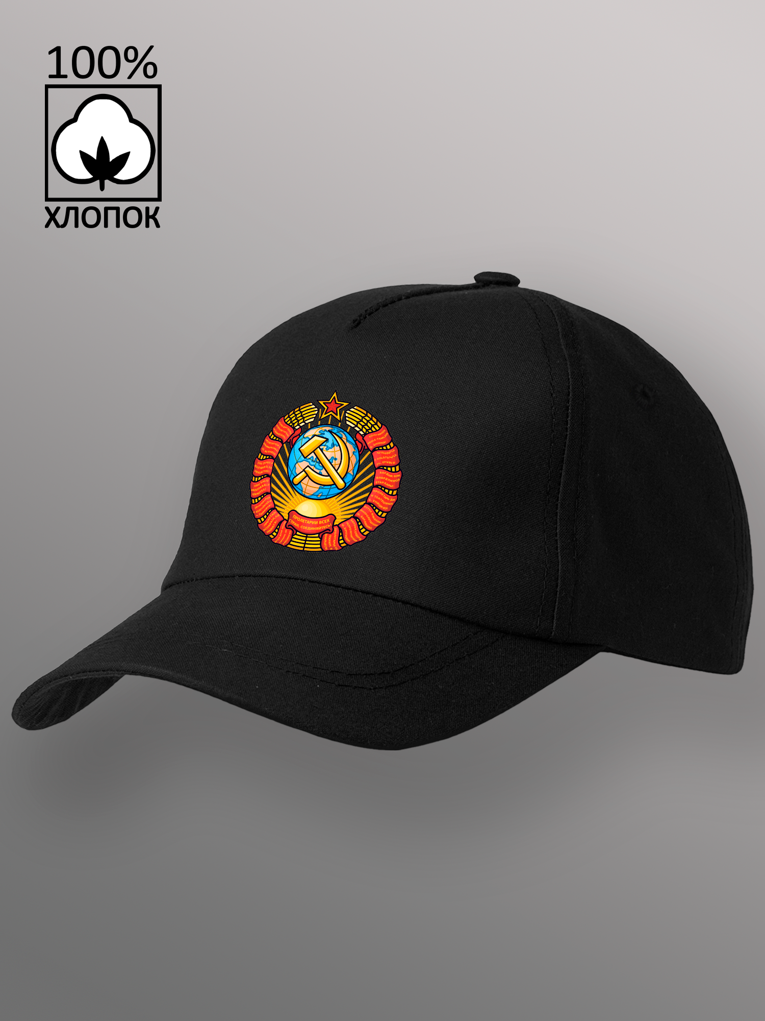 Бейсболка унисекс чёрная с принтом герб СССР серп и молот однотонная изготовлена из качественного 100% хлопка. Плотный велюр не выцветает и не деформируется со временем, а качественно прошитые детали гарантируют, что бейсболка мужская чёрная прослужит и будет радовать вас не один сезон. Кепка унисекс подходит, как мужчинам, так и женщинам, а регулируемая застёжка с металлическим клипсом позволит отрегулировать размер для детей и подростков. Бейсболка женская чёрная так же подходит для мальчика и для девочки. Обшивной люверс не нагревается на солнце, позволяя коже головы дышать. Бейсболка женская летняя, зимняя, демисезонная и подходит для любой погоды, обеспечивая надёжную защиту. Прочный козырёк защитит вас от солнца, дождя или снега. Кепка женская подходит как для ежедневной носки, так и для занятия спортом. Комфортная форма бейсболки позволяет занимается бегом, теннисом, ходьбой, волейболом, баскетболом, футболом и даже конным спортом, не опасаясь, что бейсболка для мальчика слетит с головы. Так же кепка мужская с оригинальным авторским принтом может стать незабываемым подарком для ваших друзей и близких. Порадуйте своих родственников качественной бейсболкой с прикольной надписью или ярким рисунком.