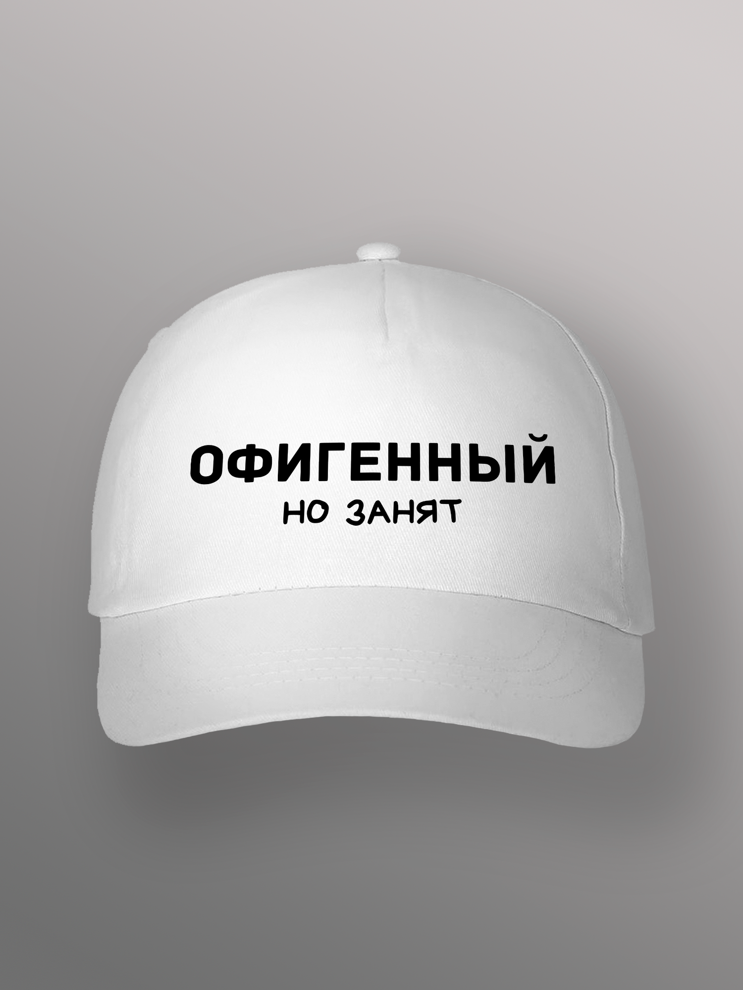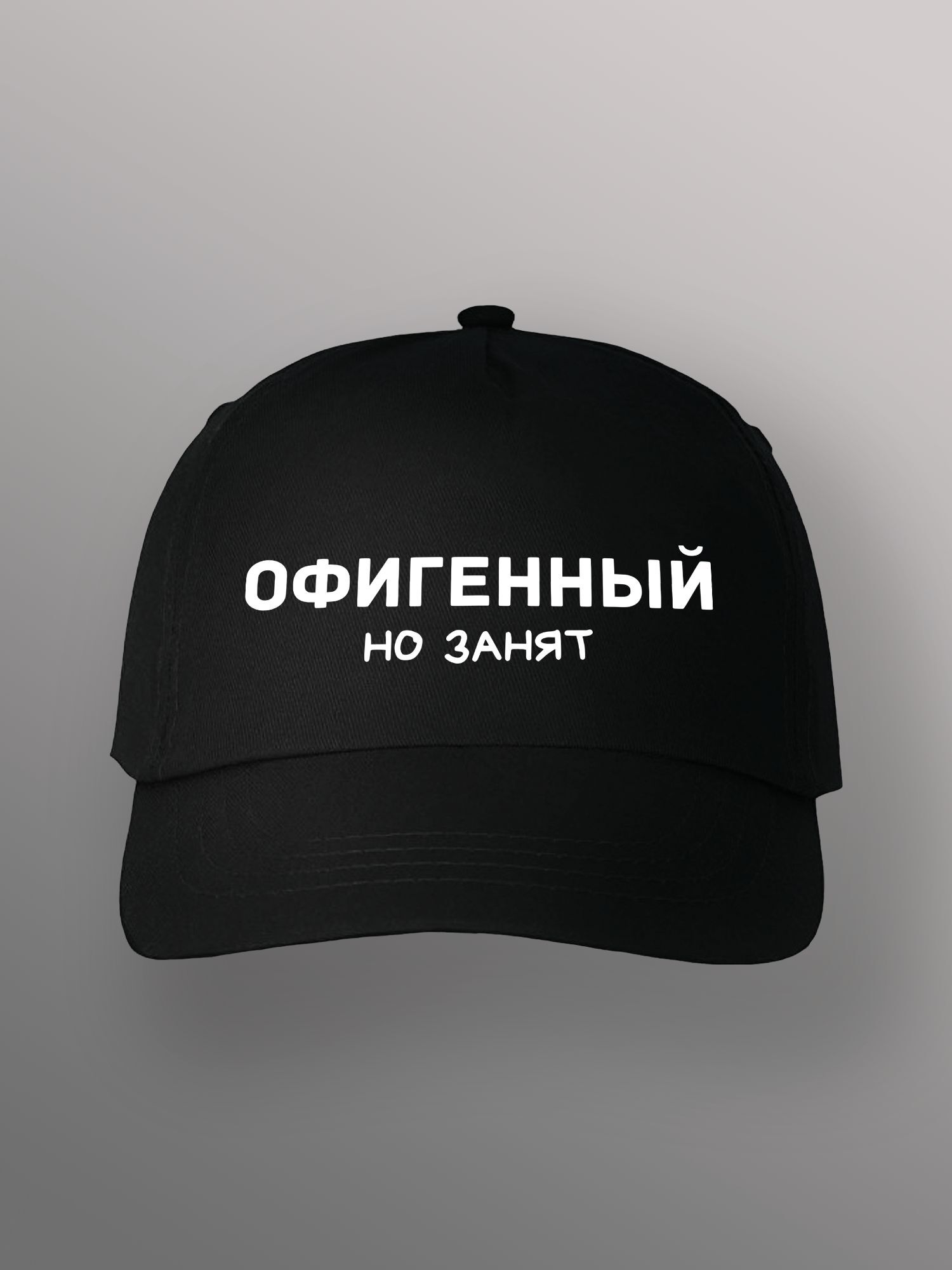 Бейсболка унисекс чёрная с принтом офигенный но занят однотонная изготовлена из качественного 100% хлопка. Плотный велюр не выцветает и не деформируется со временем, а качественно прошитые детали гарантируют, что бейсболка мужская чёрная прослужит и будет радовать вас не один сезон. Кепка унисекс подходит, как мужчинам, так и женщинам, а регулируемая застёжка с металлическим клипсом позволит отрегулировать размер для детей и подростков. Бейсболка женская чёрная так же подходит для мальчика и для девочки. Обшивной люверс не нагревается на солнце, позволяя коже головы дышать. Бейсболка женская летняя, зимняя, демисезонная и подходит для любой погоды, обеспечивая надёжную защиту. Прочный козырёк защитит вас от солнца, дождя или снега. Кепка женская подходит как для ежедневной носки, так и для занятия спортом. Комфортная форма бейсболки позволяет занимается бегом, теннисом, ходьбой, волейболом, баскетболом, футболом и даже конным спортом, не опасаясь, что бейсболка для мальчика слетит с головы. Так же кепка мужская с оригинальным авторским принтом может стать незабываемым подарком для ваших друзей и близких. Порадуйте своих родственников качественной бейсболкой с прикольной надписью или ярким рисунком.