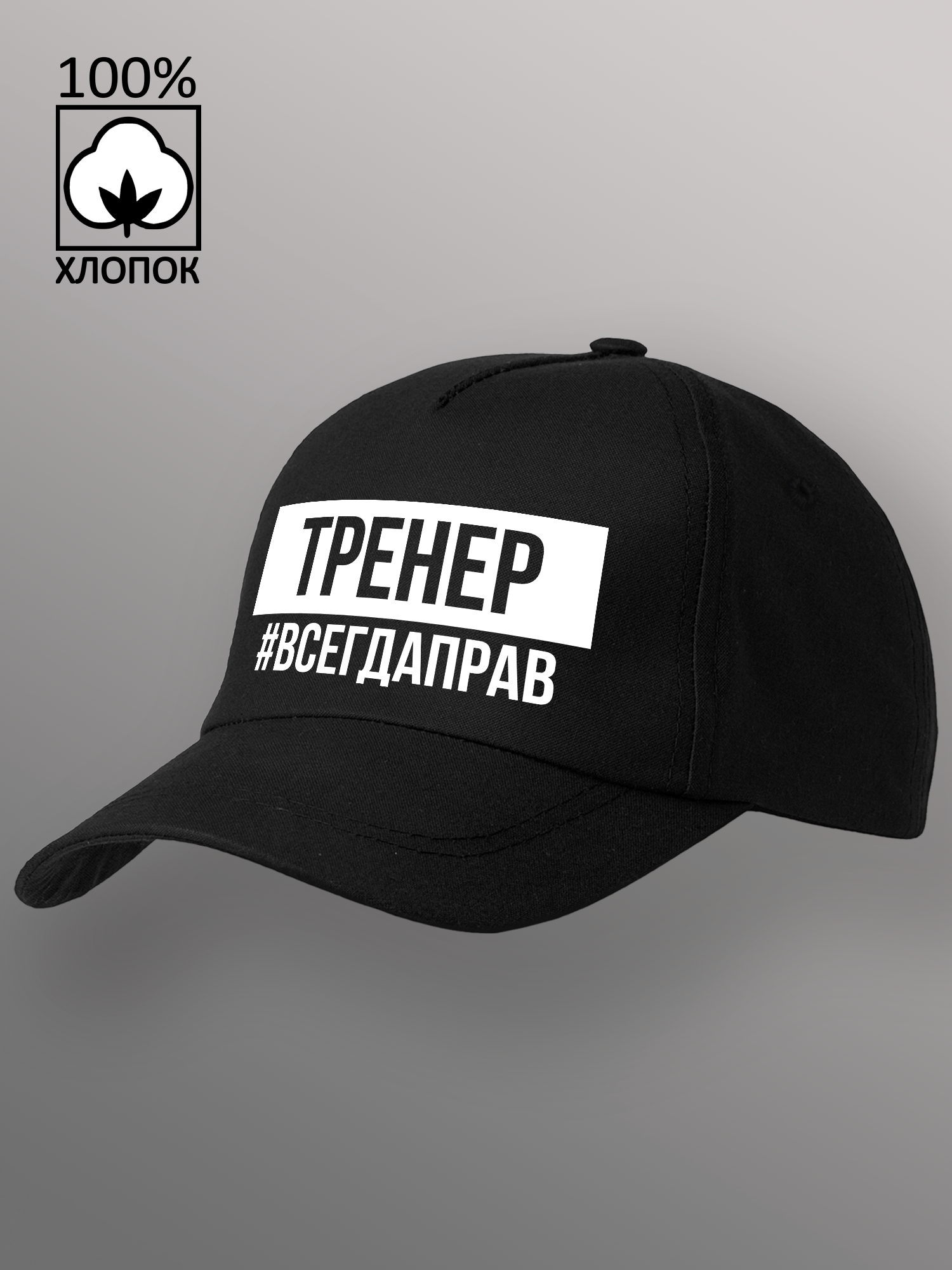 Бейсболка унисекс чёрная с принтом тренер #всегда прав однотонная изготовлена из качественного 100% хлопка. Плотный велюр не выцветает и не деформируется со временем, а качественно прошитые детали гарантируют, что бейсболка мужская чёрная прослужит и будет радовать вас не один сезон. Кепка унисекс подходит, как мужчинам, так и женщинам, а регулируемая застёжка с металлическим клипсом позволит отрегулировать размер для детей и подростков. Бейсболка женская чёрная так же подходит для мальчика и для девочки. Обшивной люверс не нагревается на солнце, позволяя коже головы дышать. Бейсболка женская летняя, зимняя, демисезонная и подходит для любой погоды, обеспечивая надёжную защиту. Прочный козырёк защитит вас от солнца, дождя или снега. Кепка женская подходит как для ежедневной носки, так и для занятия спортом. Комфортная форма бейсболки позволяет занимается бегом, теннисом, ходьбой, волейболом, баскетболом, футболом и даже конным спортом, не опасаясь, что бейсболка для мальчика слетит с головы. Так же кепка мужская с оригинальным авторским принтом может стать незабываемым подарком для ваших друзей и близких. Порадуйте своих родственников качественной бейсболкой с прикольной надписью или ярким рисунком.
