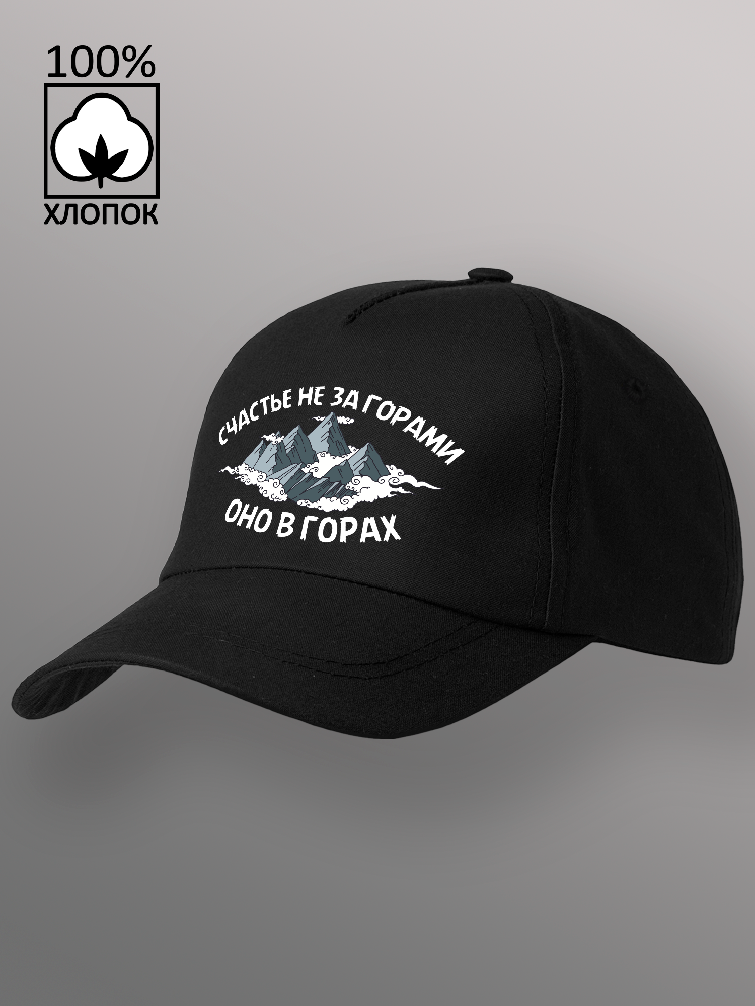 Бейсболка унисекс чёрная с принтом счастье в горах однотонная изготовлена из качественного 100% хлопка. Плотный велюр не выцветает и не деформируется со временем, а качественно прошитые детали гарантируют, что бейсболка мужская чёрная прослужит и будет радовать вас не один сезон. Кепка унисекс подходит, как мужчинам, так и женщинам, а регулируемая застёжка с металлическим клипсом позволит отрегулировать размер для детей и подростков. Бейсболка женская чёрная так же подходит для мальчика и для девочки. Обшивной люверс не нагревается на солнце, позволяя коже головы дышать. Бейсболка женская летняя, зимняя, демисезонная и подходит для любой погоды, обеспечивая надёжную защиту. Прочный козырёк защитит вас от солнца, дождя или снега. Кепка женская подходит как для ежедневной носки, так и для занятия спортом. Комфортная форма бейсболки позволяет занимается бегом, теннисом, ходьбой, волейболом, баскетболом, футболом и даже конным спортом, не опасаясь, что бейсболка для мальчика слетит с головы. Так же кепка мужская с оригинальным авторским принтом может стать незабываемым подарком для ваших друзей и близких. Порадуйте своих родственников качественной бейсболкой с прикольной надписью или ярким рисунком.