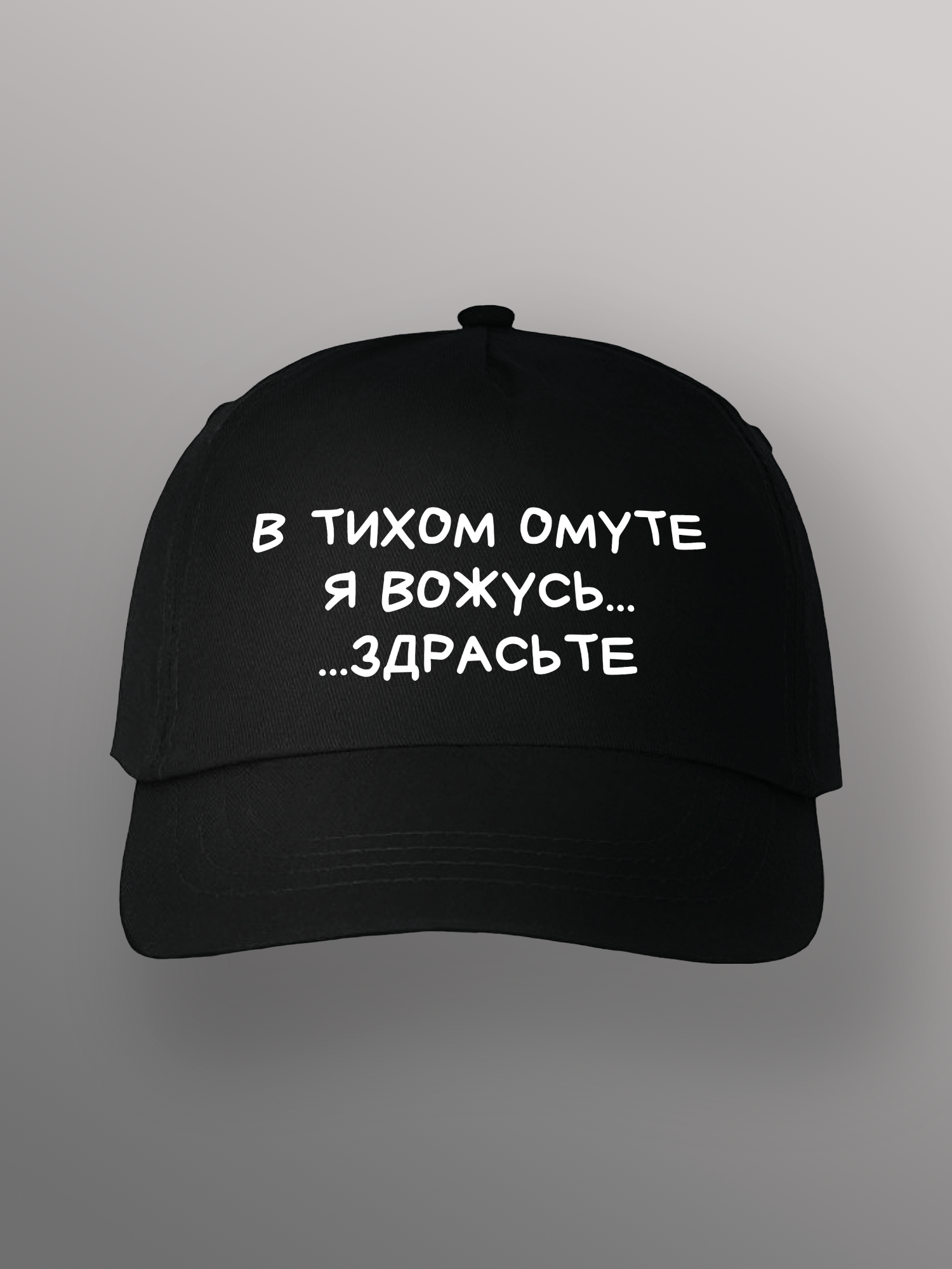 Бейсболка унисекс чёрная с принтом в тихом омуте я вожусь, здрасьте однотонная изготовлена из качественного 100% хлопка. Плотный велюр не выцветает и не деформируется со временем, а качественно прошитые детали гарантируют, что бейсболка мужская чёрная прослужит и будет радовать вас не один сезон. Кепка унисекс подходит, как мужчинам, так и женщинам, а регулируемая застёжка с металлическим клипсом позволит отрегулировать размер для детей и подростков. Бейсболка женская чёрная так же подходит для мальчика и для девочки. Обшивной люверс не нагревается на солнце, позволяя коже головы дышать. Бейсболка женская летняя, зимняя, демисезонная и подходит для любой погоды, обеспечивая надёжную защиту. Прочный козырёк защитит вас от солнца, дождя или снега. Кепка женская подходит как для ежедневной носки, так и для занятия спортом. Комфортная форма бейсболки позволяет занимается бегом, теннисом, ходьбой, волейболом, баскетболом, футболом и даже конным спортом, не опасаясь, что бейсболка для мальчика слетит с головы. Так же кепка мужская с оригинальным авторским принтом может стать незабываемым подарком для ваших друзей и близких. Порадуйте своих родственников качественной бейсболкой с прикольной надписью или ярким рисунком.
