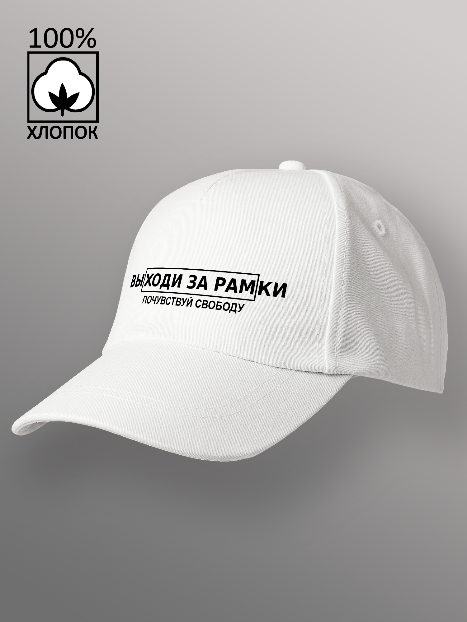 Бейсболка унисекс чёрная с принтом Выходи за рамки однотонная изготовлена из качественного 100% хлопка. Плотный велюр не выцветает и не деформируется со временем, а качественно прошитые детали гарантируют, что бейсболка мужская чёрная прослужит и будет радовать вас не один сезон. Кепка унисекс подходит, как мужчинам, так и женщинам, а регулируемая застёжка с металлическим клипсом позволит отрегулировать размер для детей и подростков. Бейсболка женская чёрная так же подходит для мальчика и для девочки. Обшивной люверс не нагревается на солнце, позволяя коже головы дышать. Бейсболка женская летняя, зимняя, демисезонная и подходит для любой погоды, обеспечивая надёжную защиту. Прочный козырёк защитит вас от солнца, дождя или снега. Кепка женская подходит как для ежедневной носки, так и для занятия спортом. Комфортная форма бейсболки позволяет занимается бегом, теннисом, ходьбой, волейболом, баскетболом, футболом и даже конным спортом, не опасаясь, что бейсболка для мальчика слетит с головы. Так же кепка мужская с оригинальным авторским принтом может стать незабываемым подарком для ваших друзей и близких. Порадуйте своих родственников качественной бейсболкой с прикольной надписью или ярким рисунком.