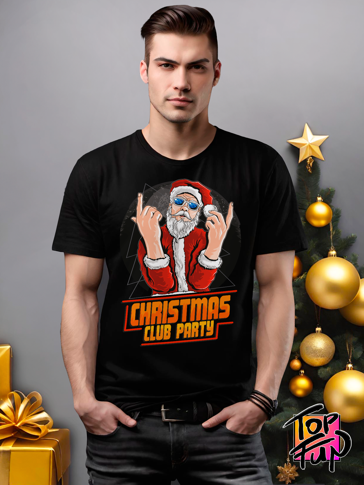 Хлопковая футболка женская новогодняя с принтом Rock n roll Santa Claus