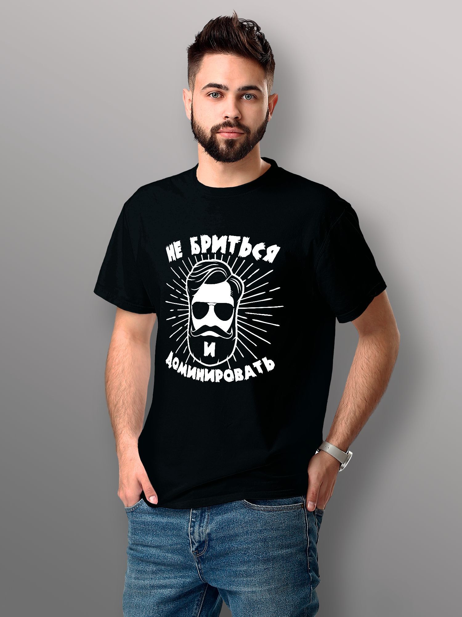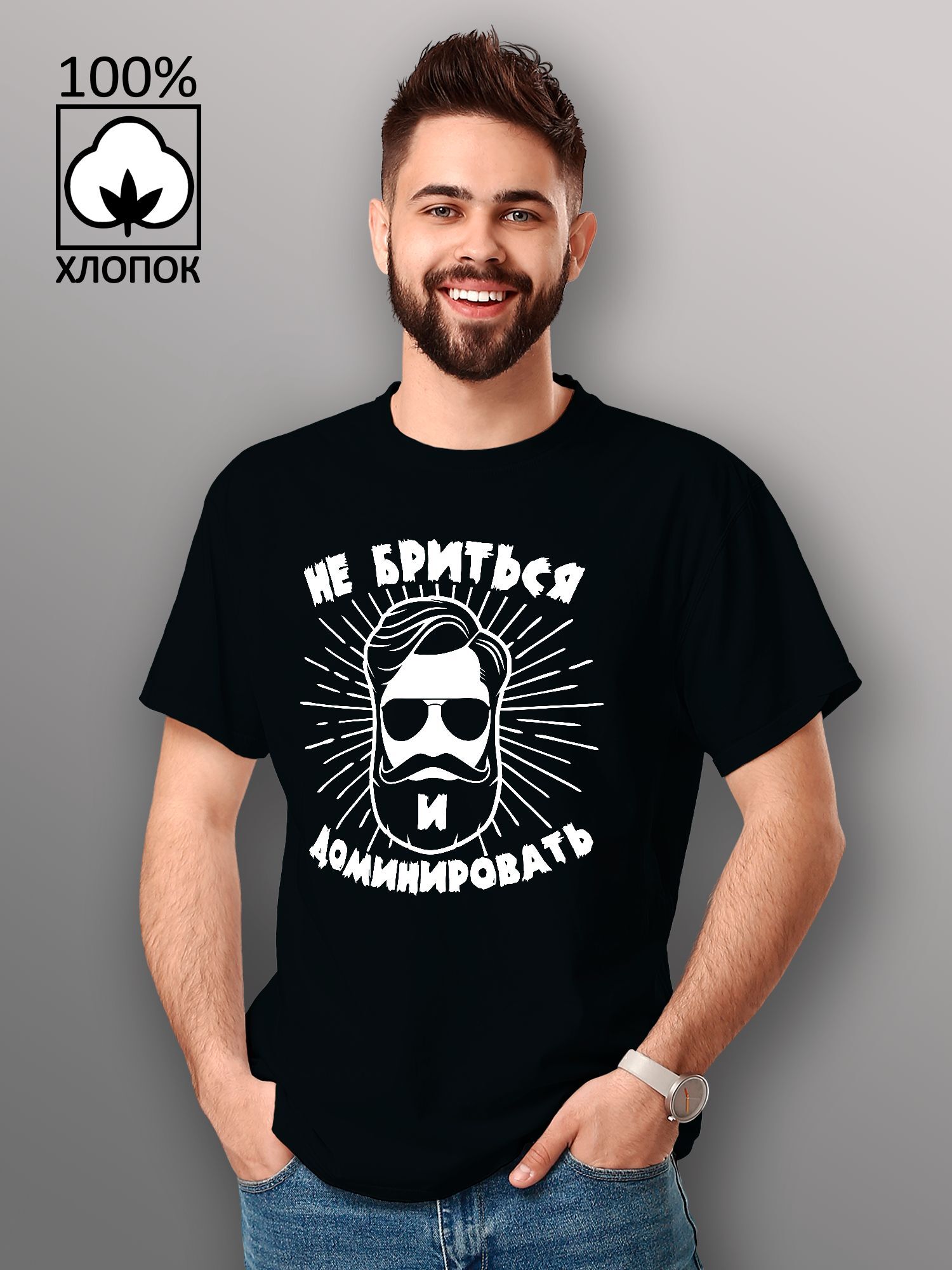 Хлопковая футболка мужская с принтом Не бриться и доминировать борода