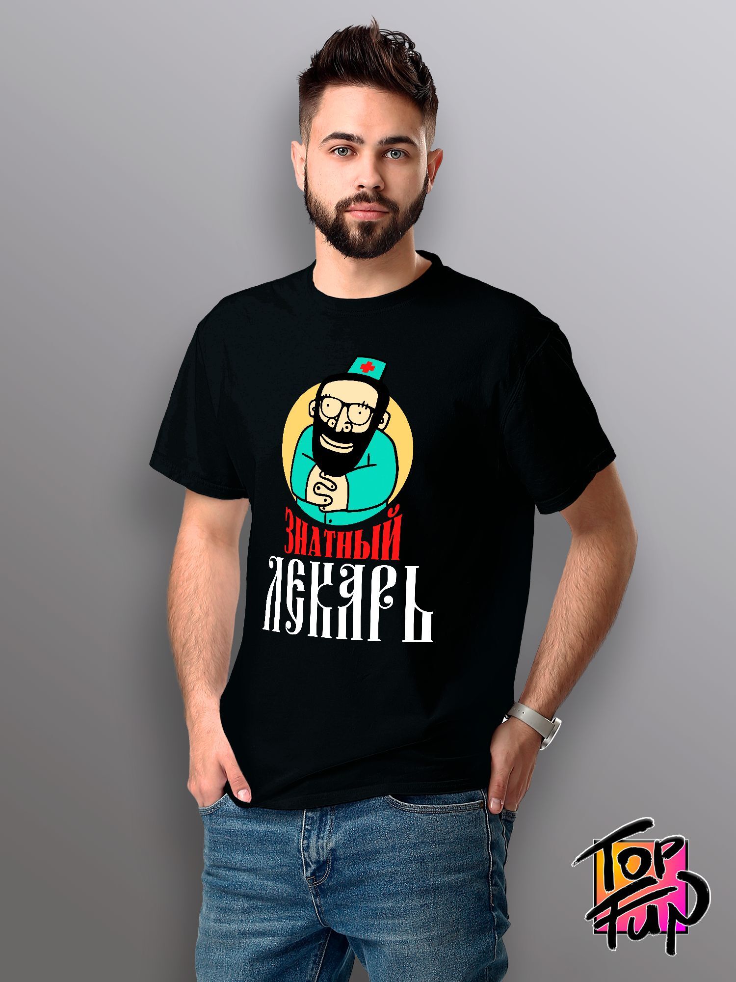 Хлопковая футболка мужская с принтом Знатный лекарь, врач.