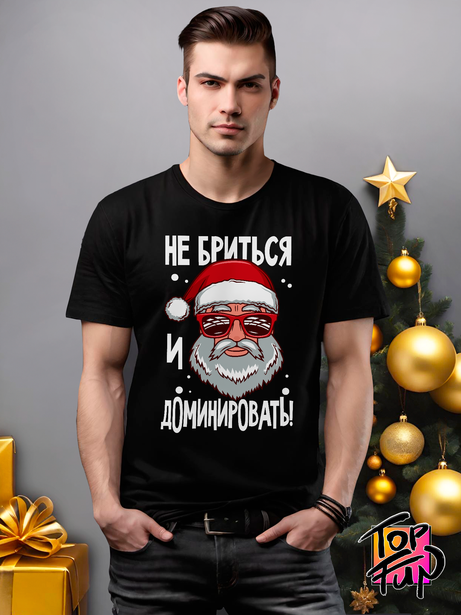 Хлопковая футболка женская новогодняя с принтом Не бриться и доминировать Дед Мороз