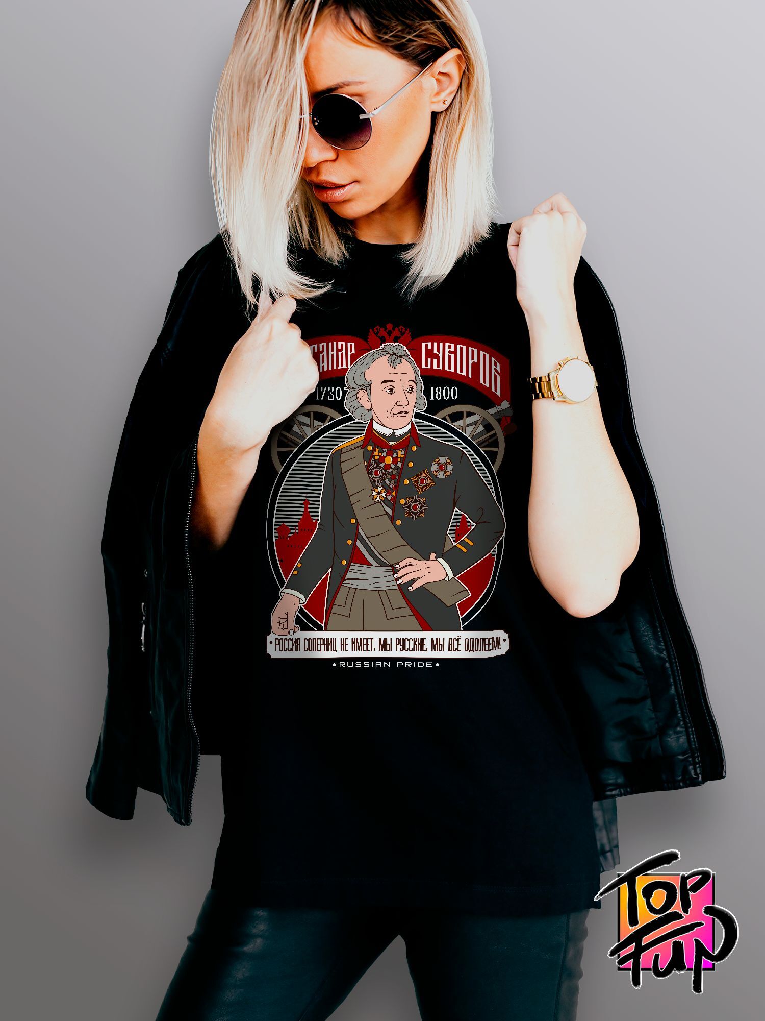 Хлопковая футболка женская с принтом Александр Суворов russian pride