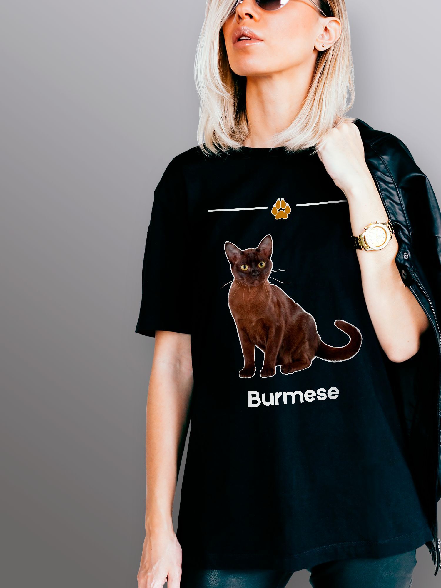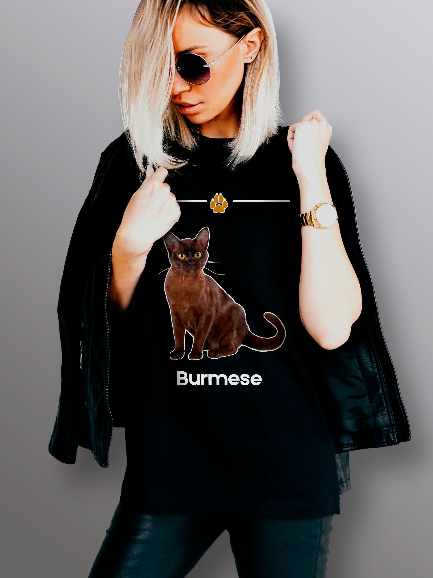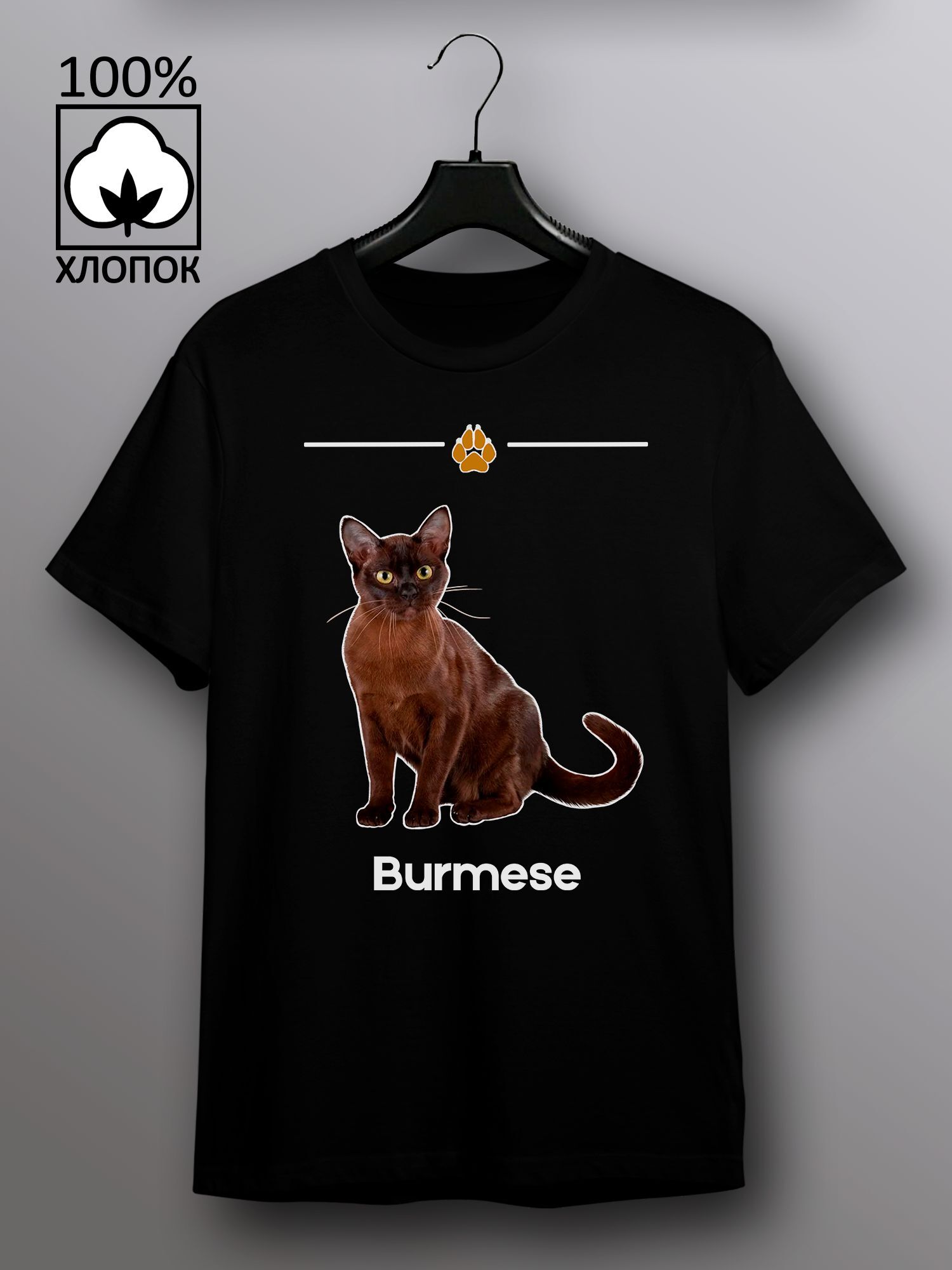 Хлопковая футболка женская с принтом бурманская кошка и надписью бурма