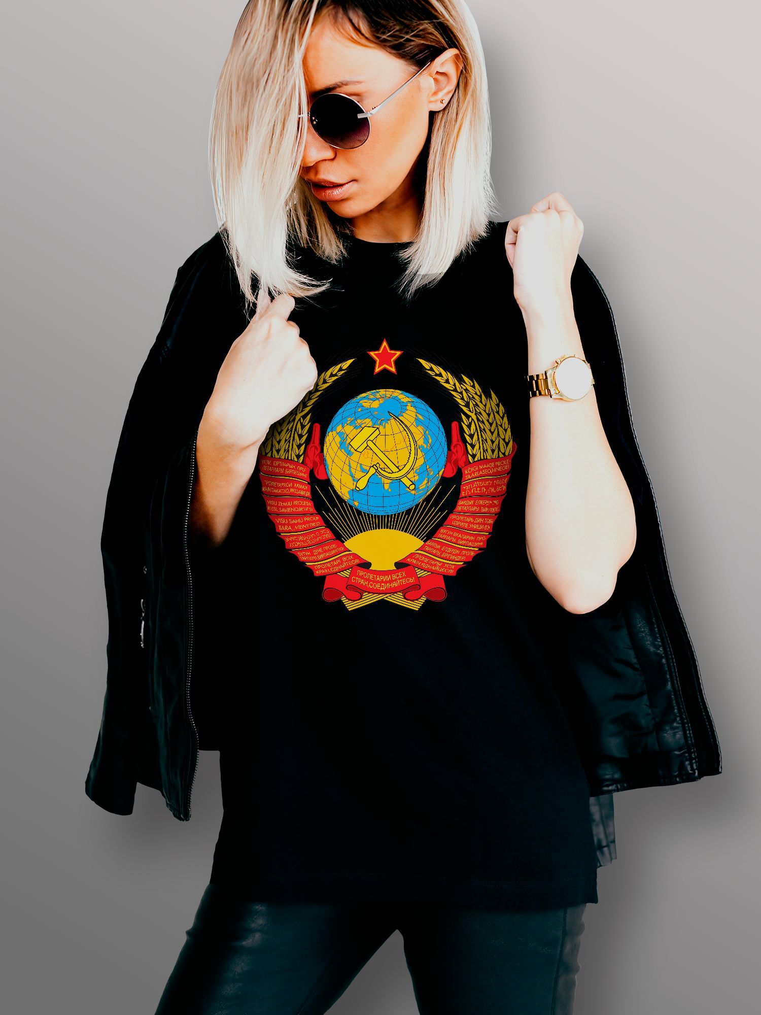 Хлопковая футболка женская с принтом Герб СССР