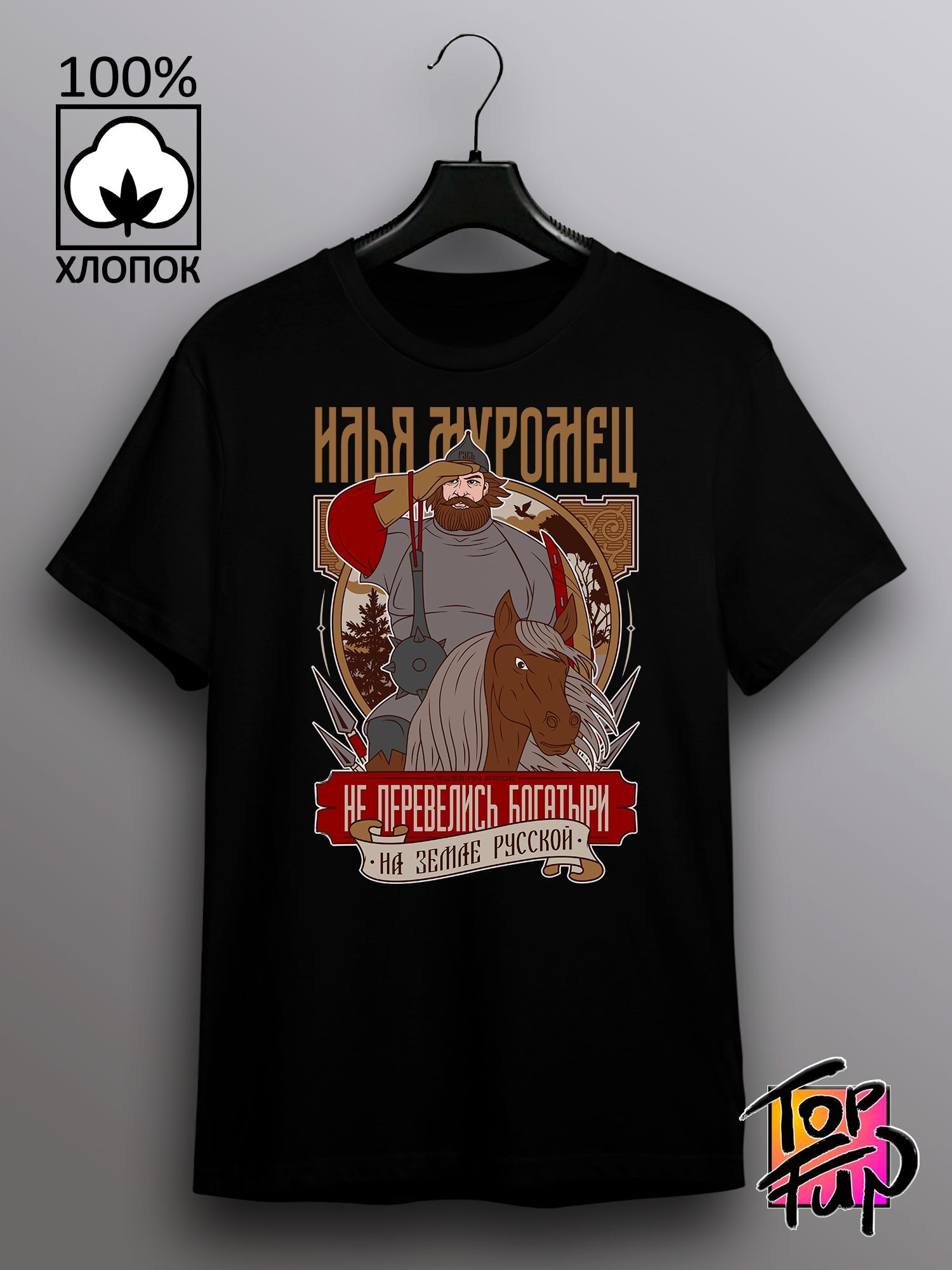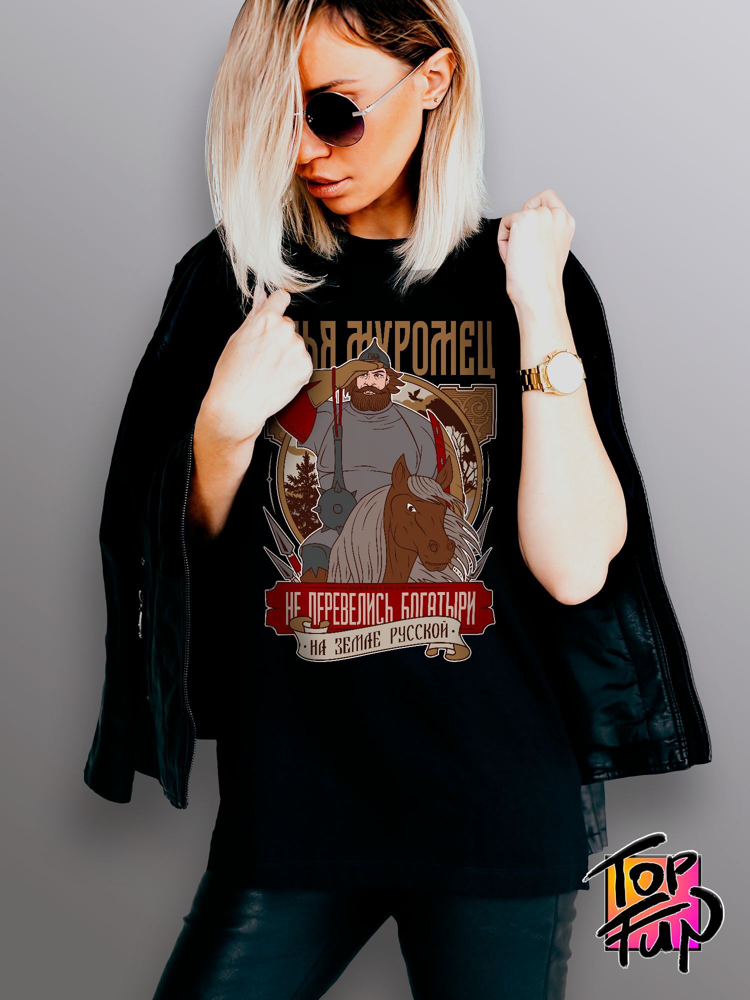 Хлопковая футболка женская с принтом богатырь Илья Муромец russian pride