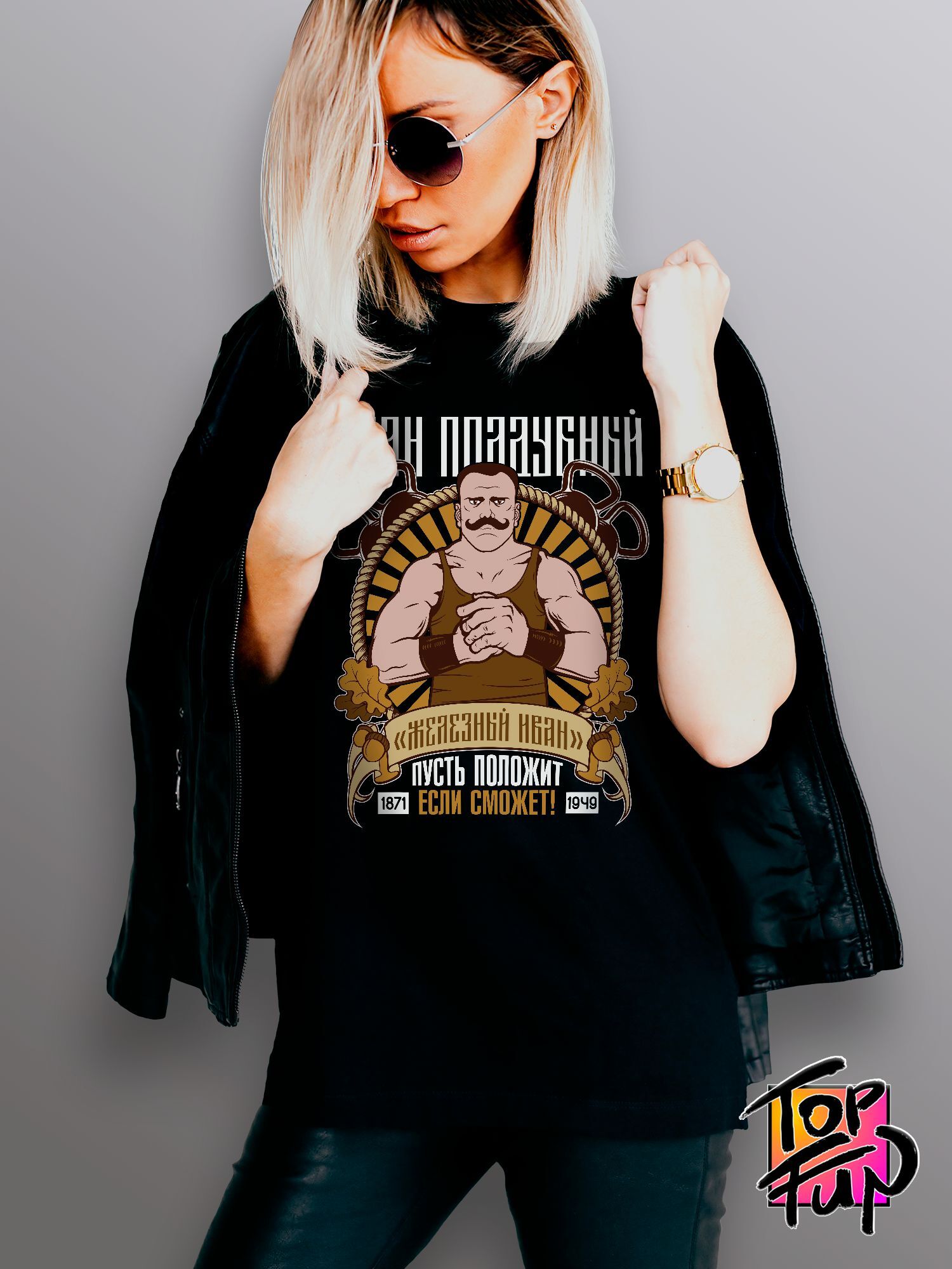 Хлопковая футболка женская с принтом Иван Поддубный russian pride