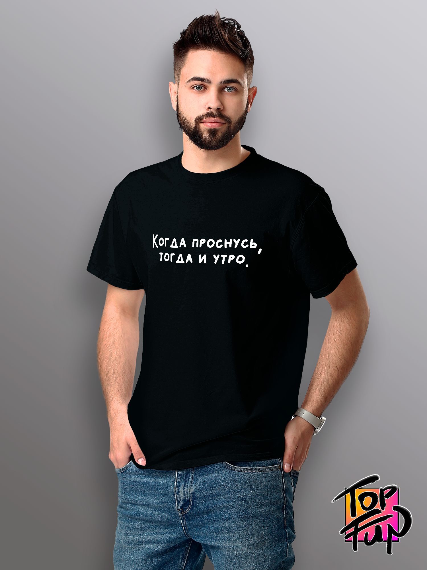 Хлопковая футболка с принтом Когда проснусь, тогда и утро