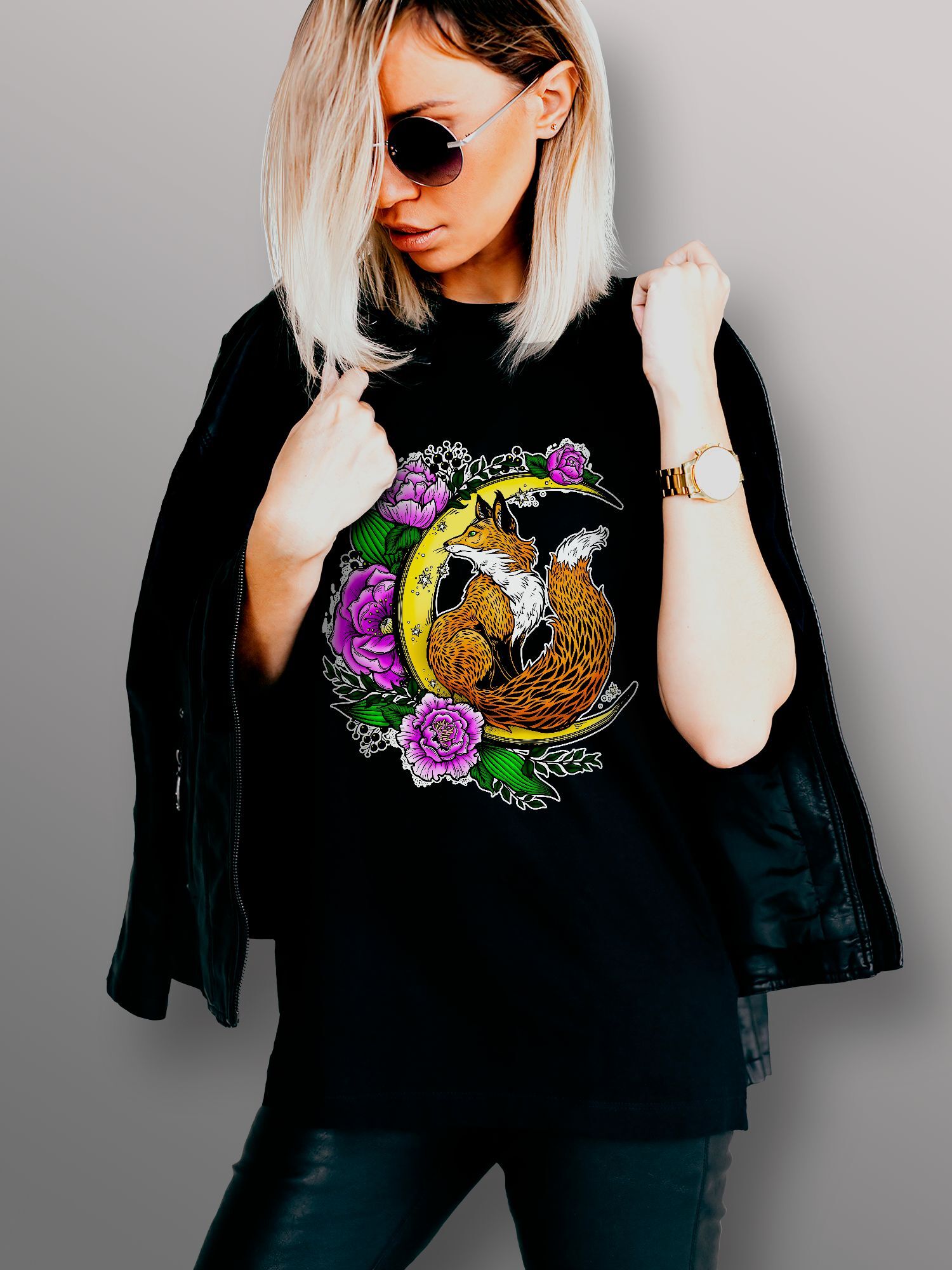 Хлопковая футболка женская с принтом Лиса на луне