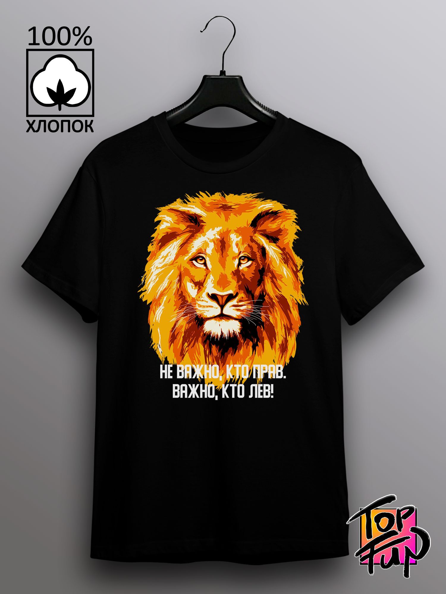 Хлопковая футболка женская с принтом Не важно, кто прав, важно, кто лев