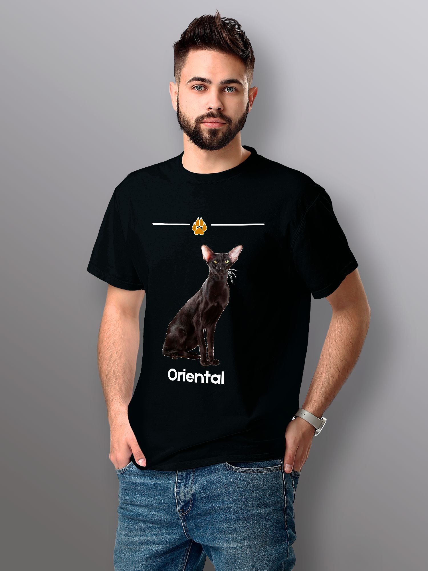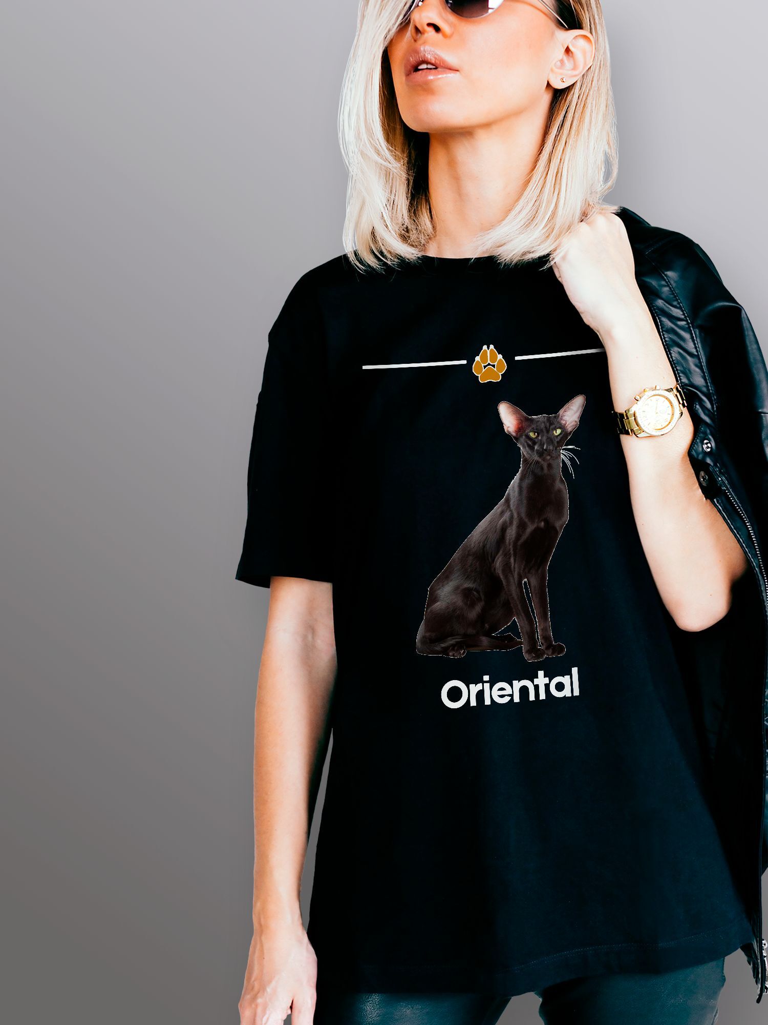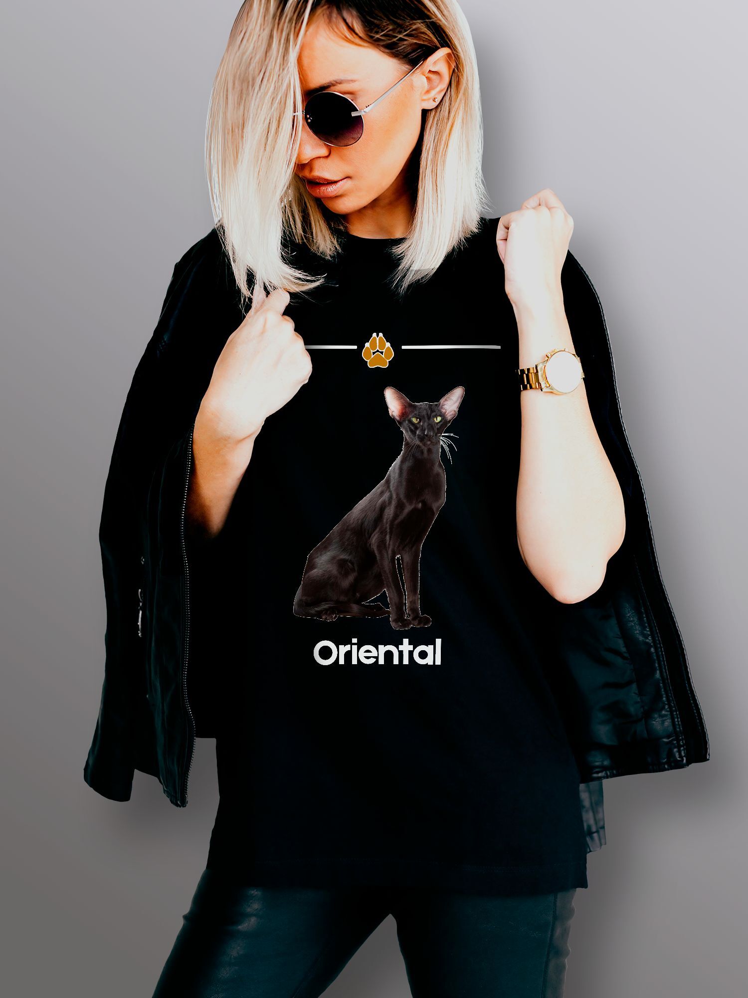 Хлопковая футболка женская с принтом ориентальная кошка и надписью ориентал