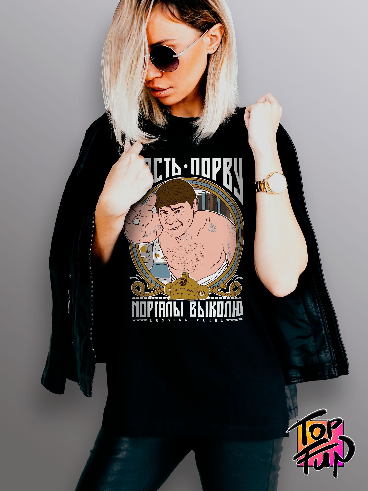 Хлопковая футболка женская с принтом Евгений Леонов и надписью Пасть порву russian pride