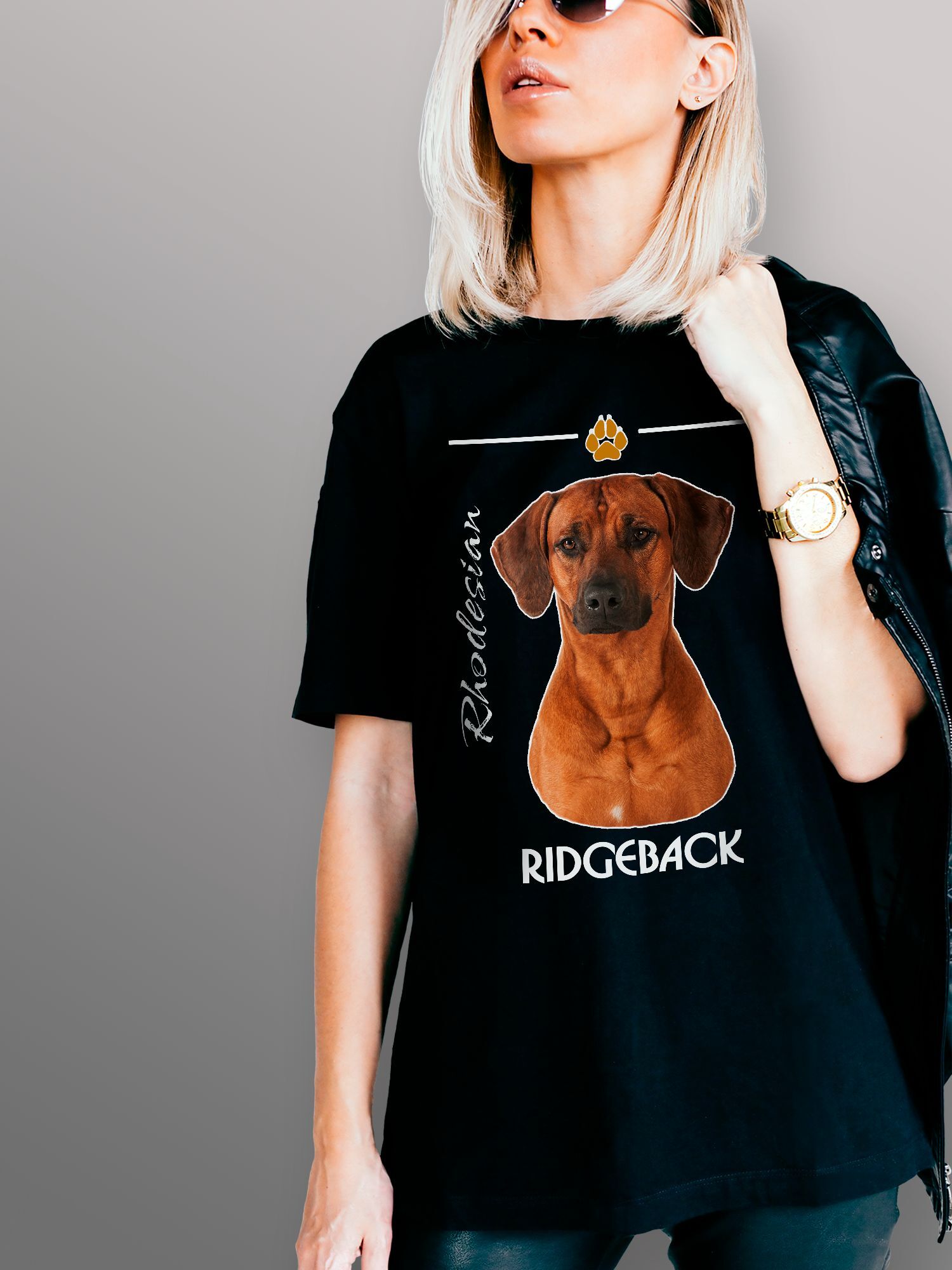 Хлопковая футболка женская с принтом собака породы родезийский риджбек