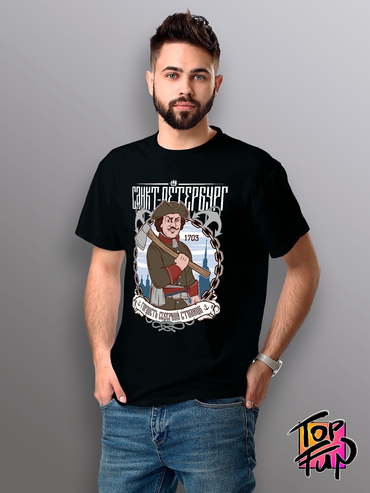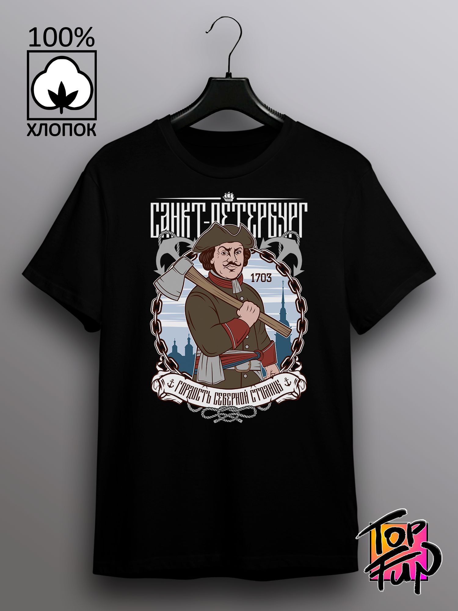 Хлопковая футболка женская с принтом Санкт-Петербург Петр Первый russian pride.