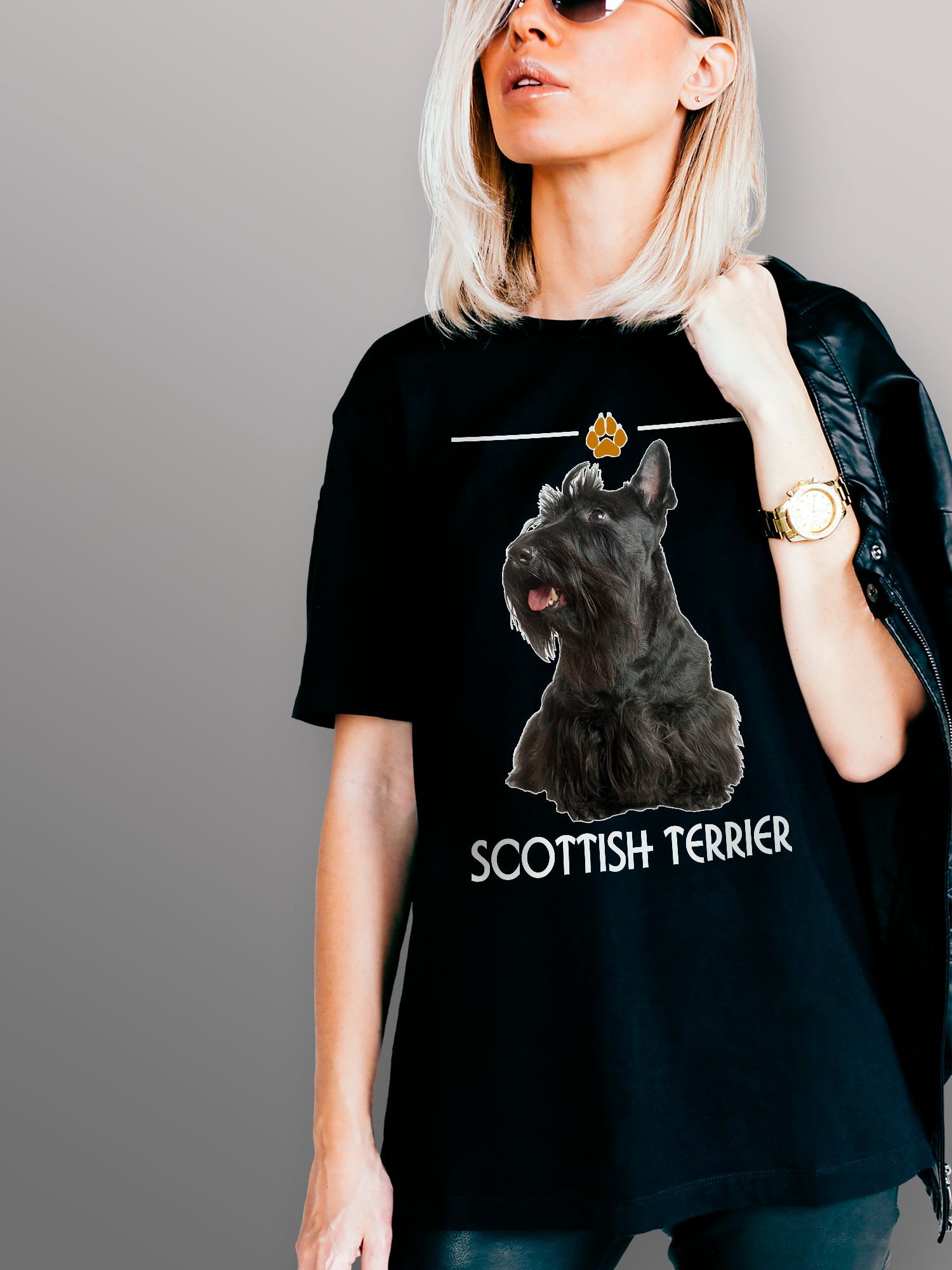 Хлопковая футболка женская с принтом собака породы шотландский терьер