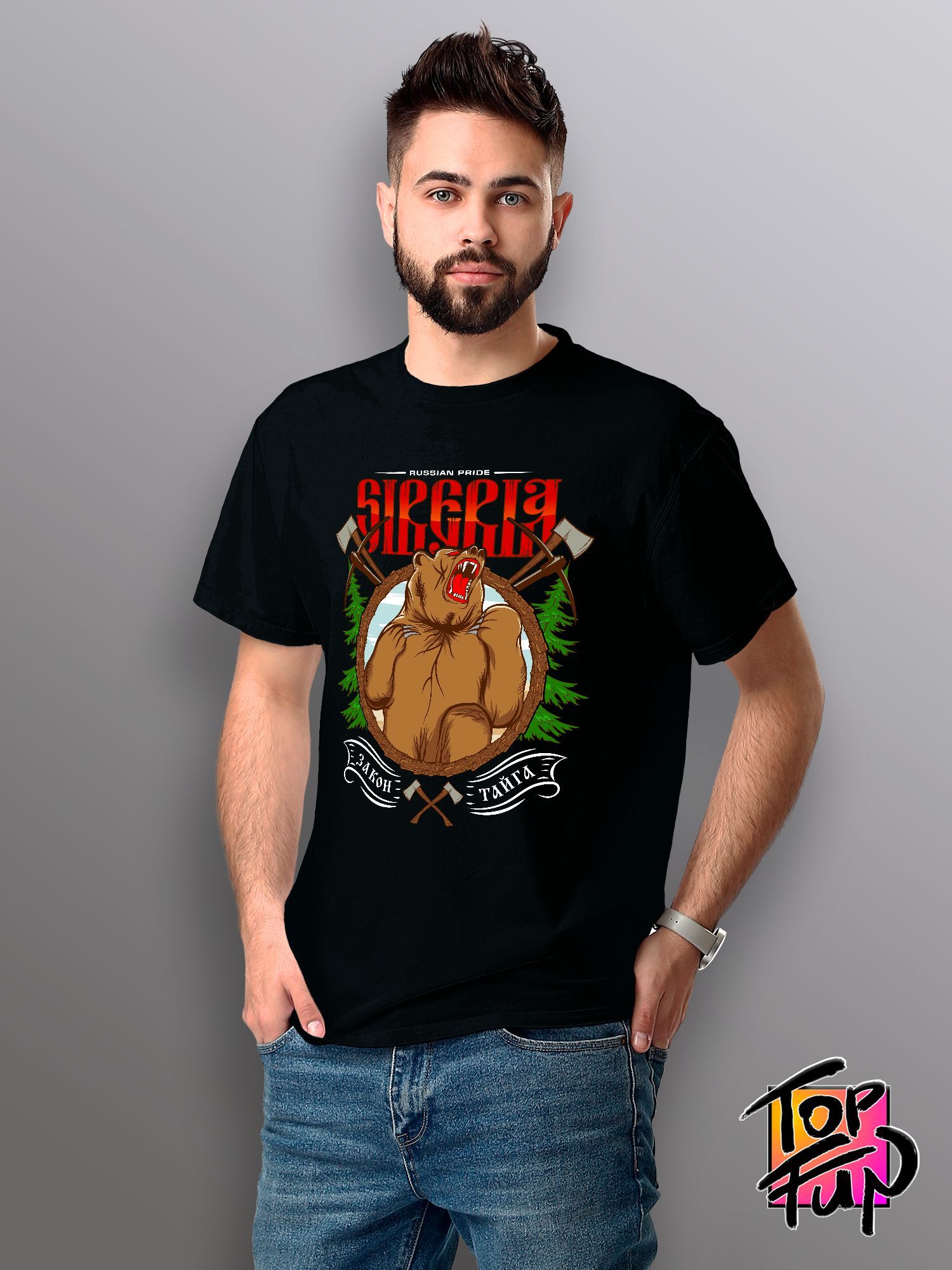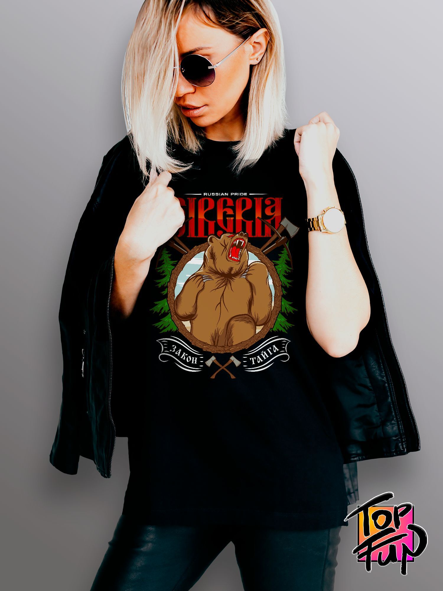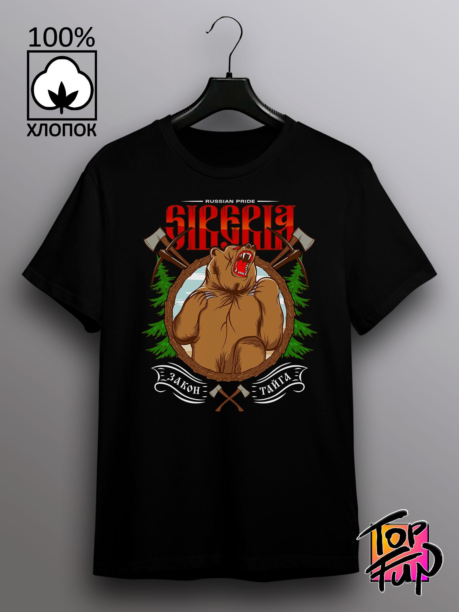 Хлопковая футболка женская с принтом Сибирь и медведь russian pride