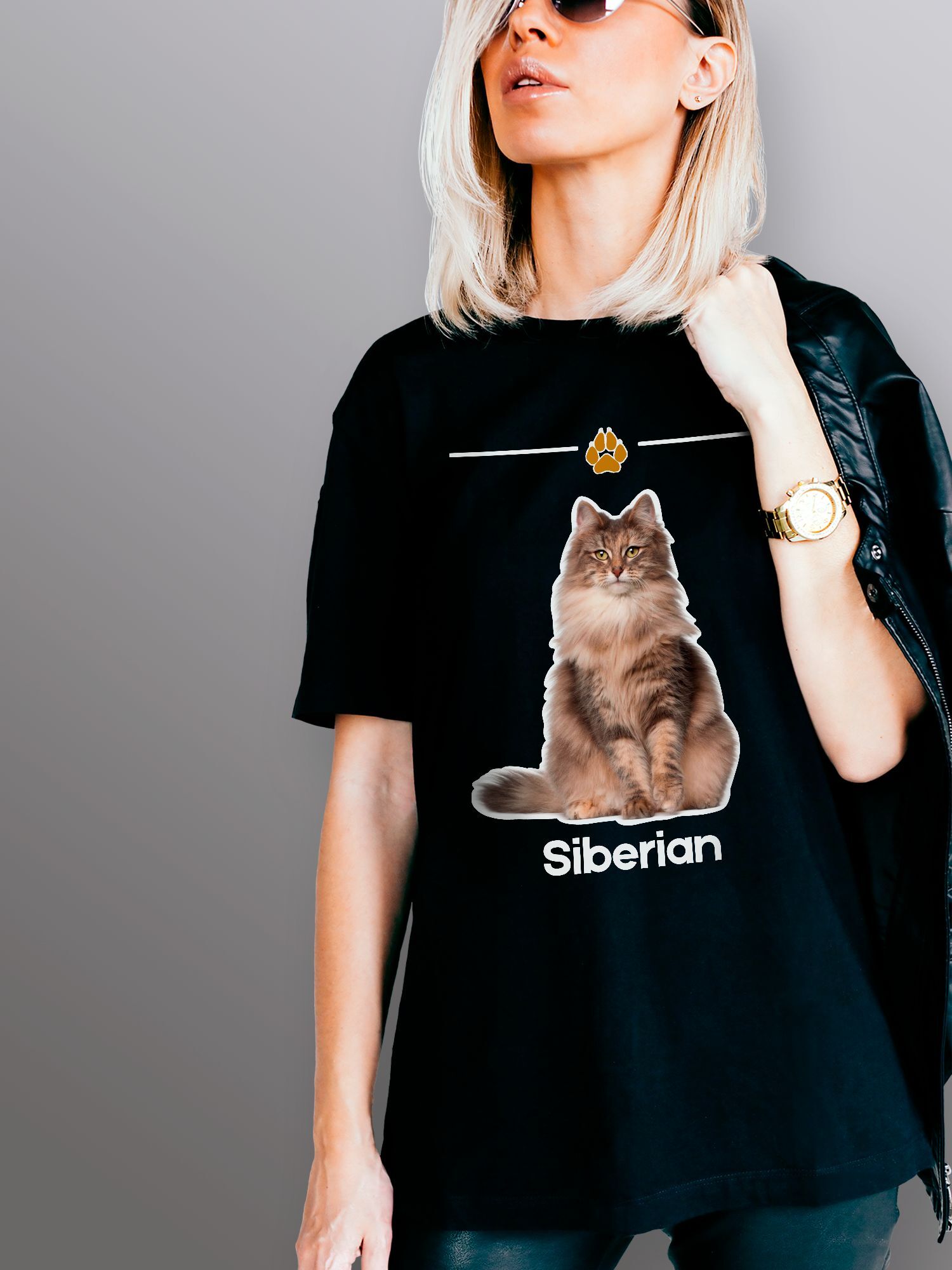 Хлопковая футболка женская с принтом сибирская кошка