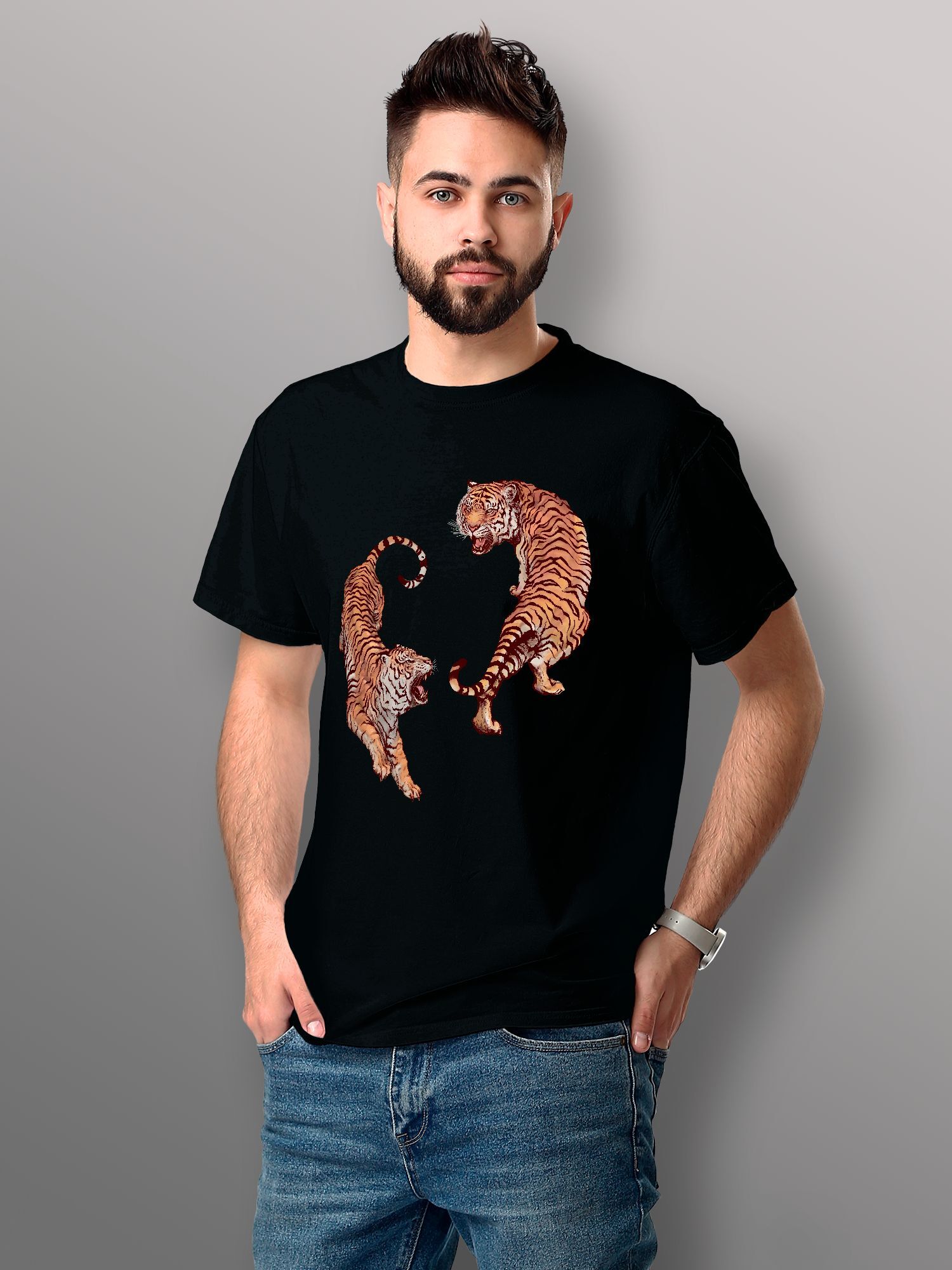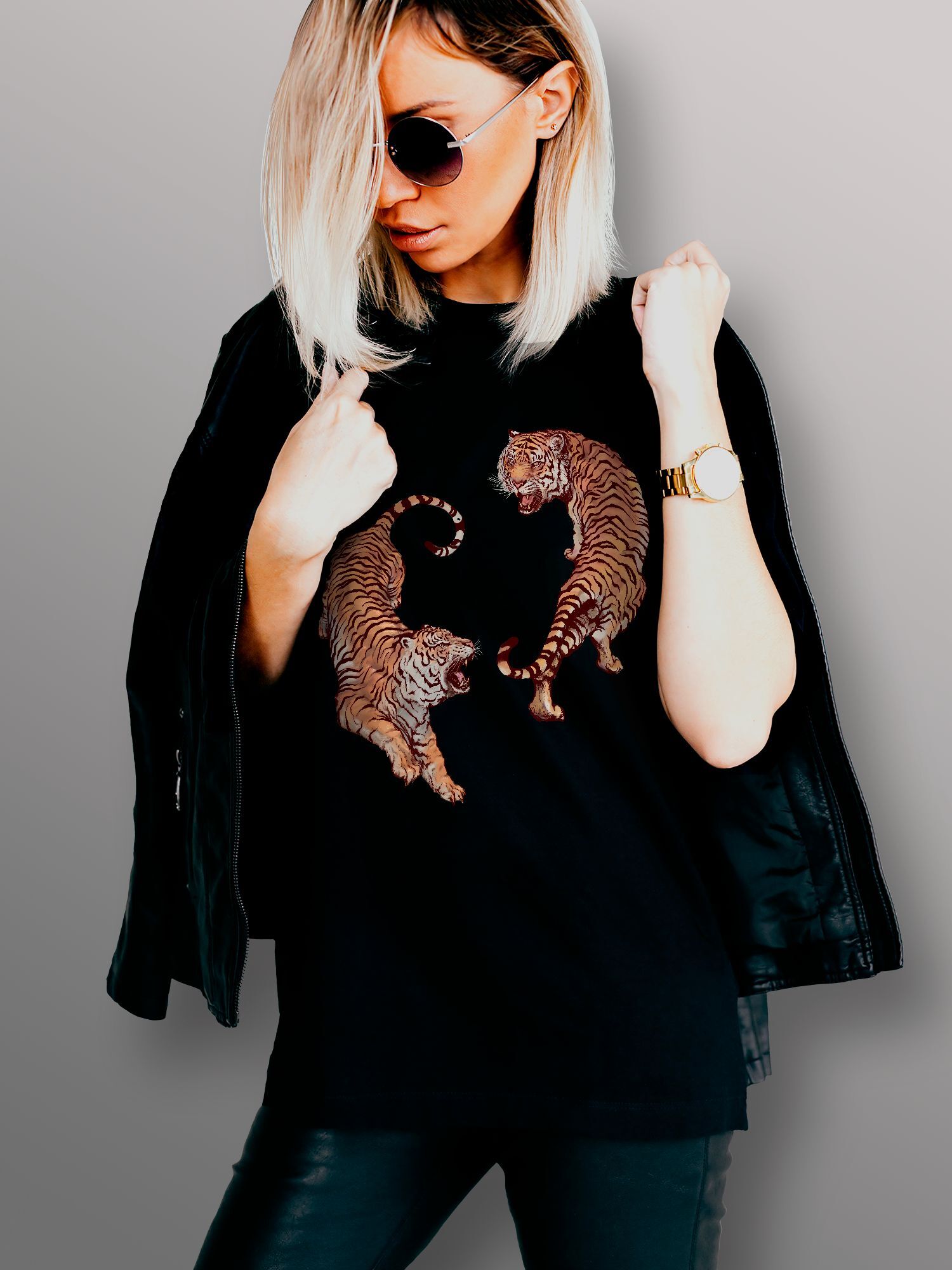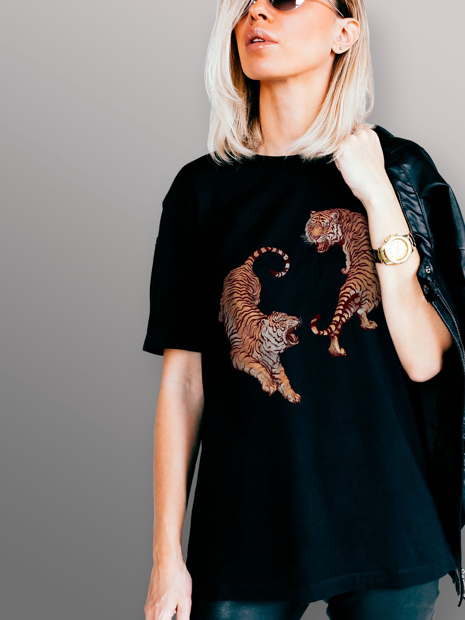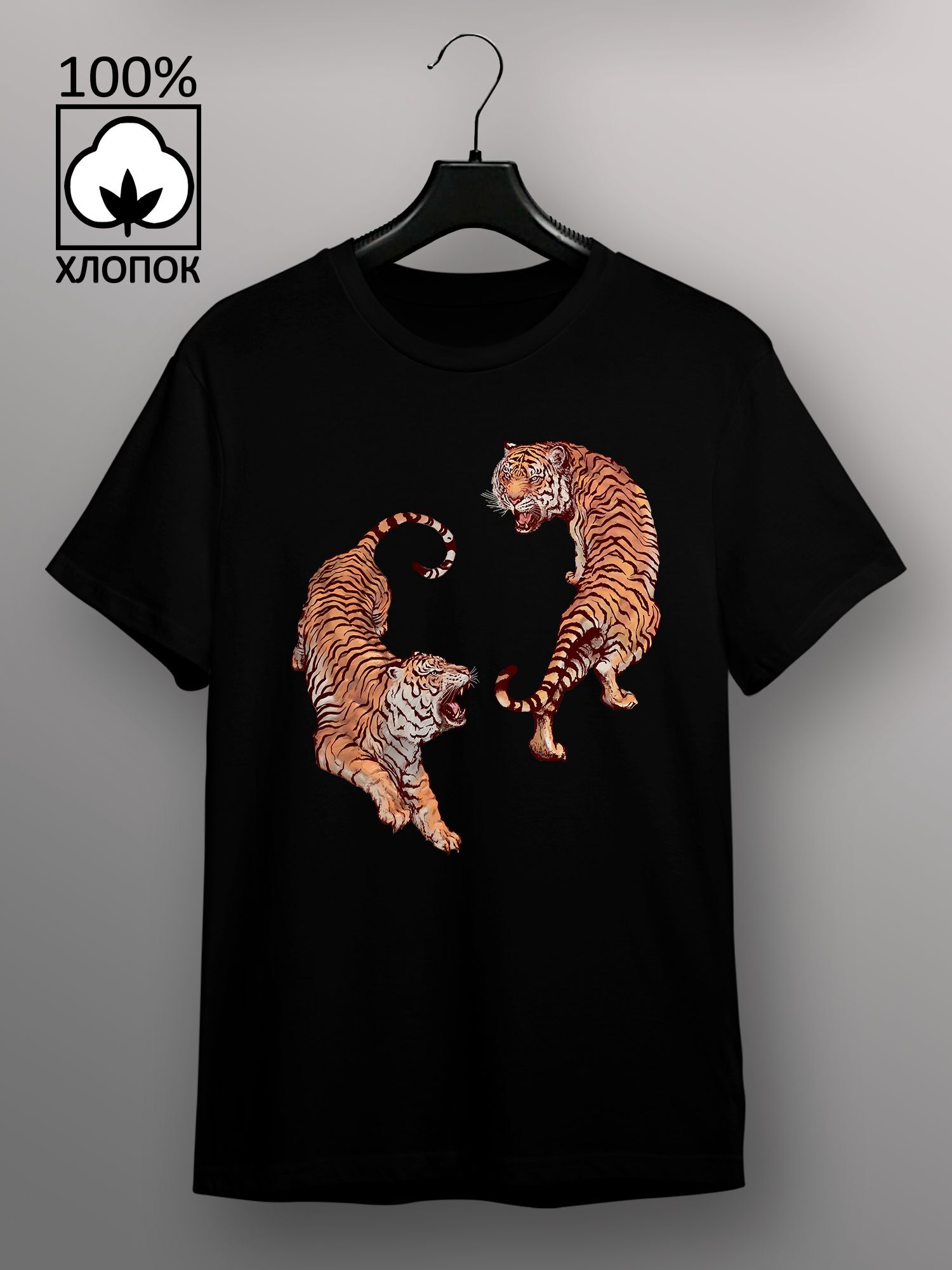 Хлопковая футболка женская с принтом Тигры в восточном стиле