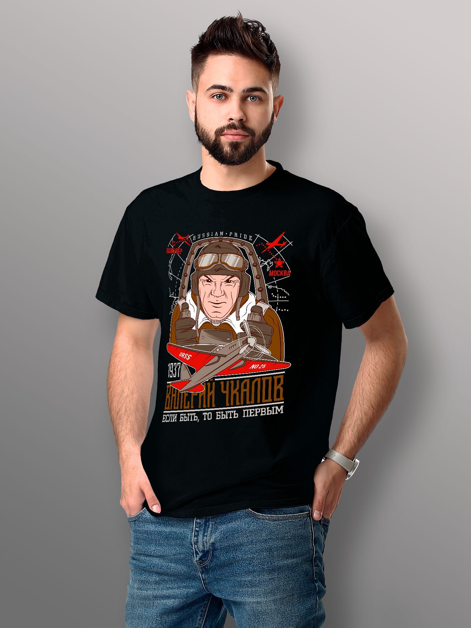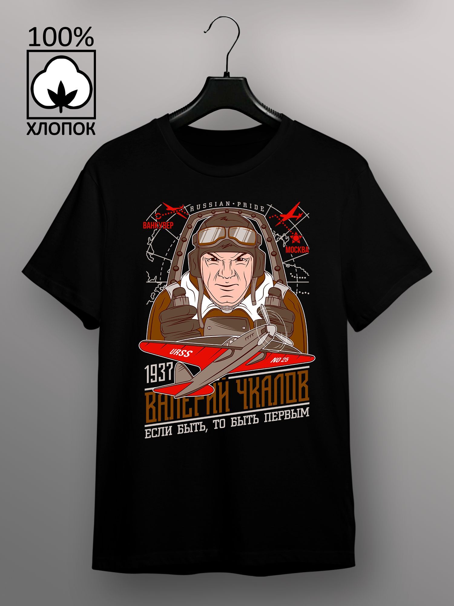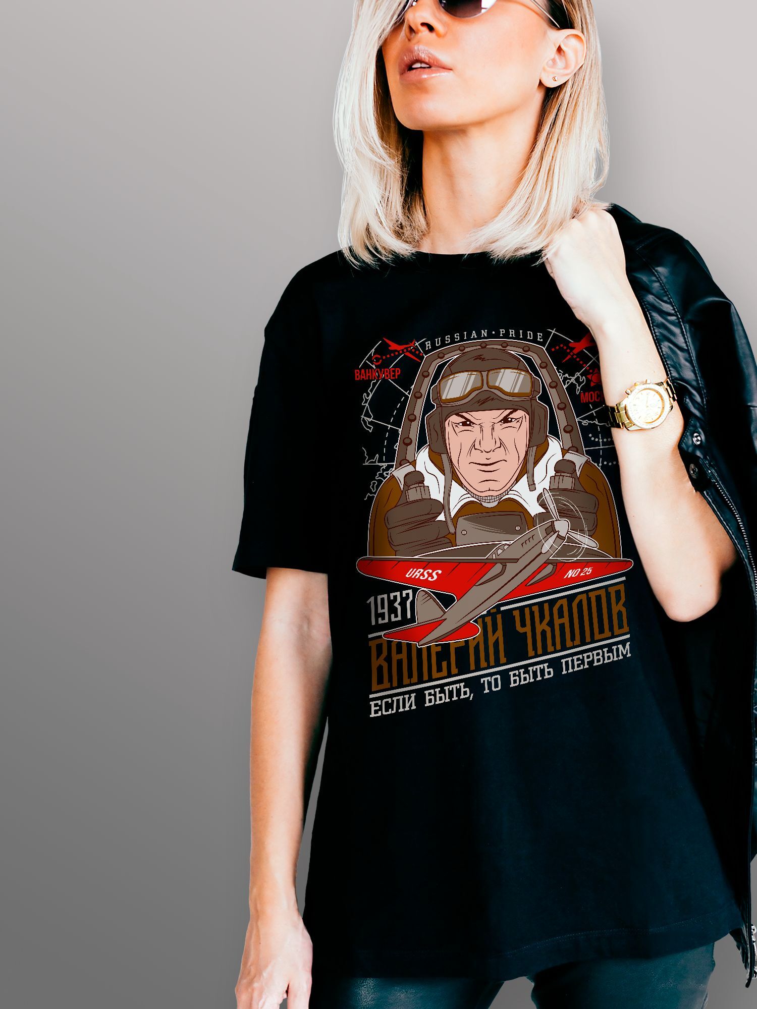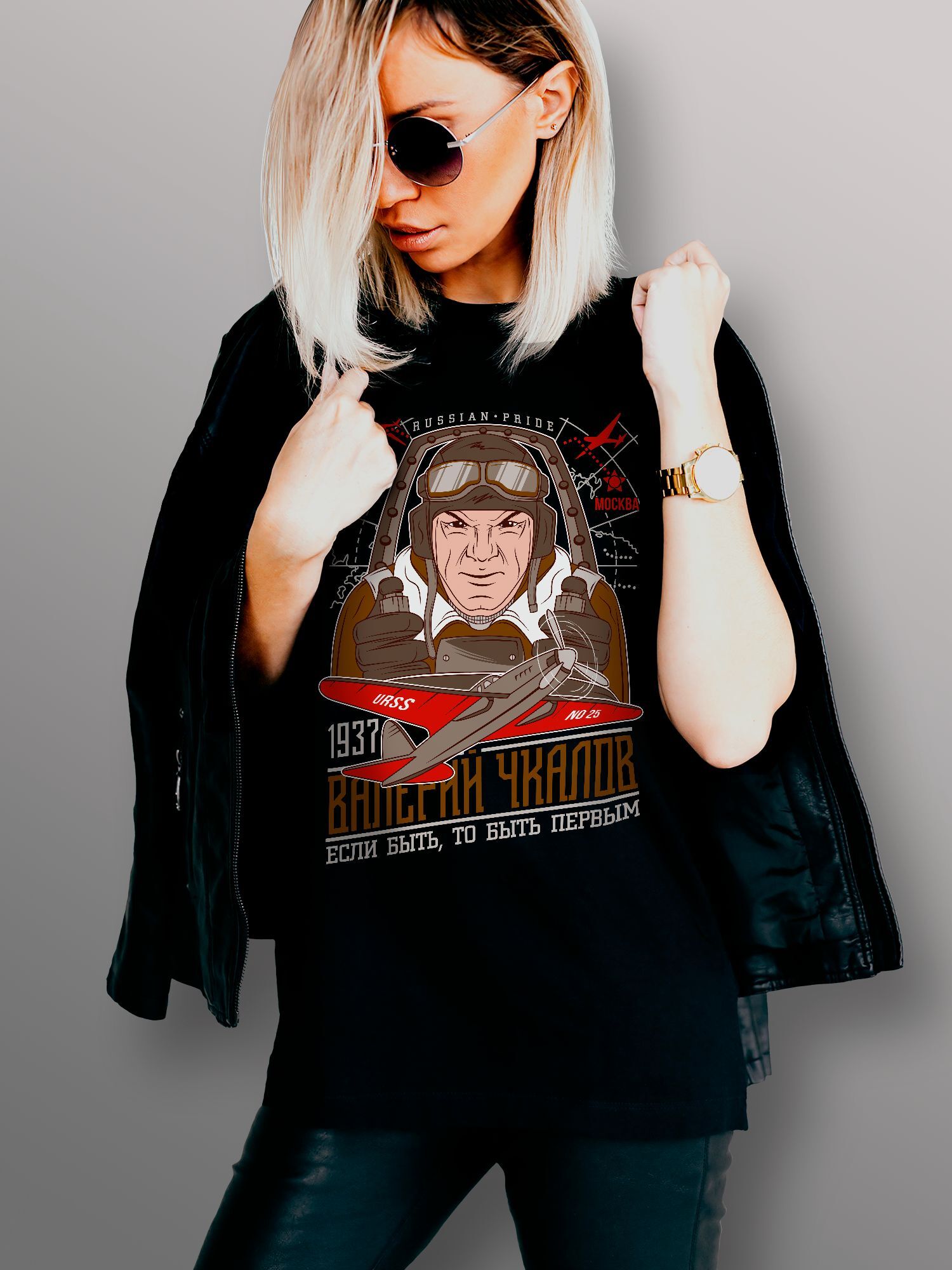 Хлопковая футболка женская с принтом Валерий Чкалов russian pride