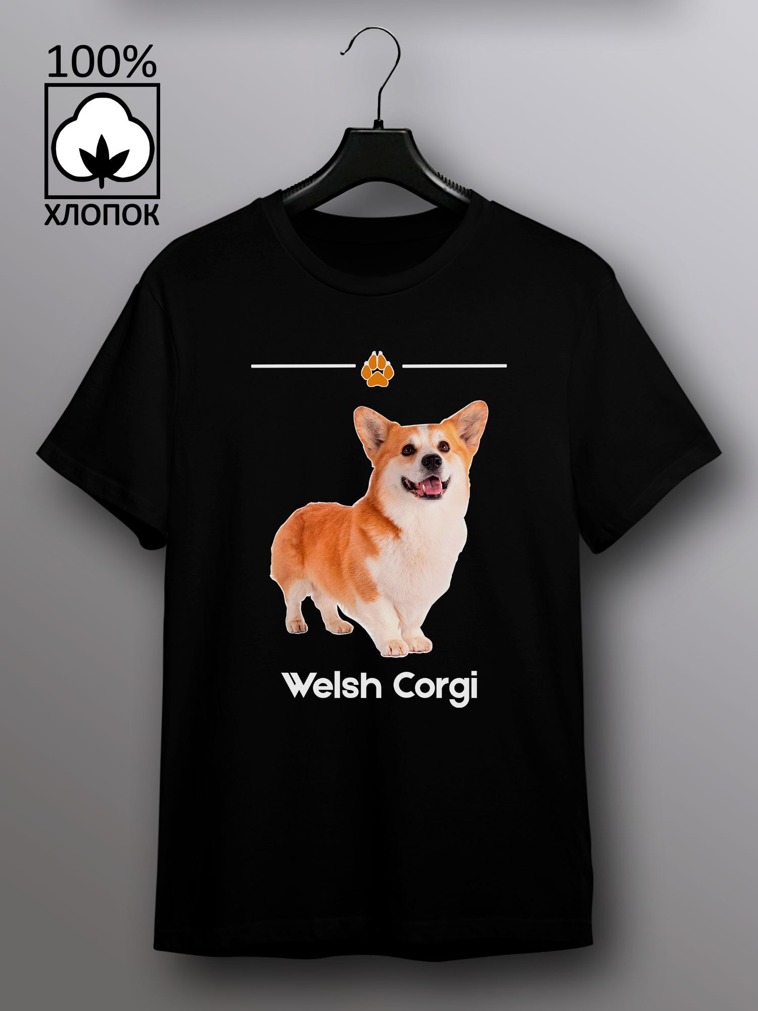 Хлопковая футболка женская с принтом с собакой породы корги вельш-корги