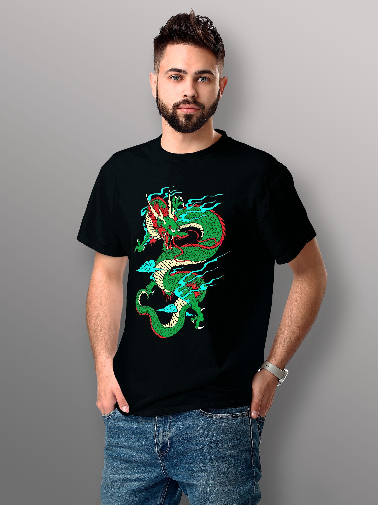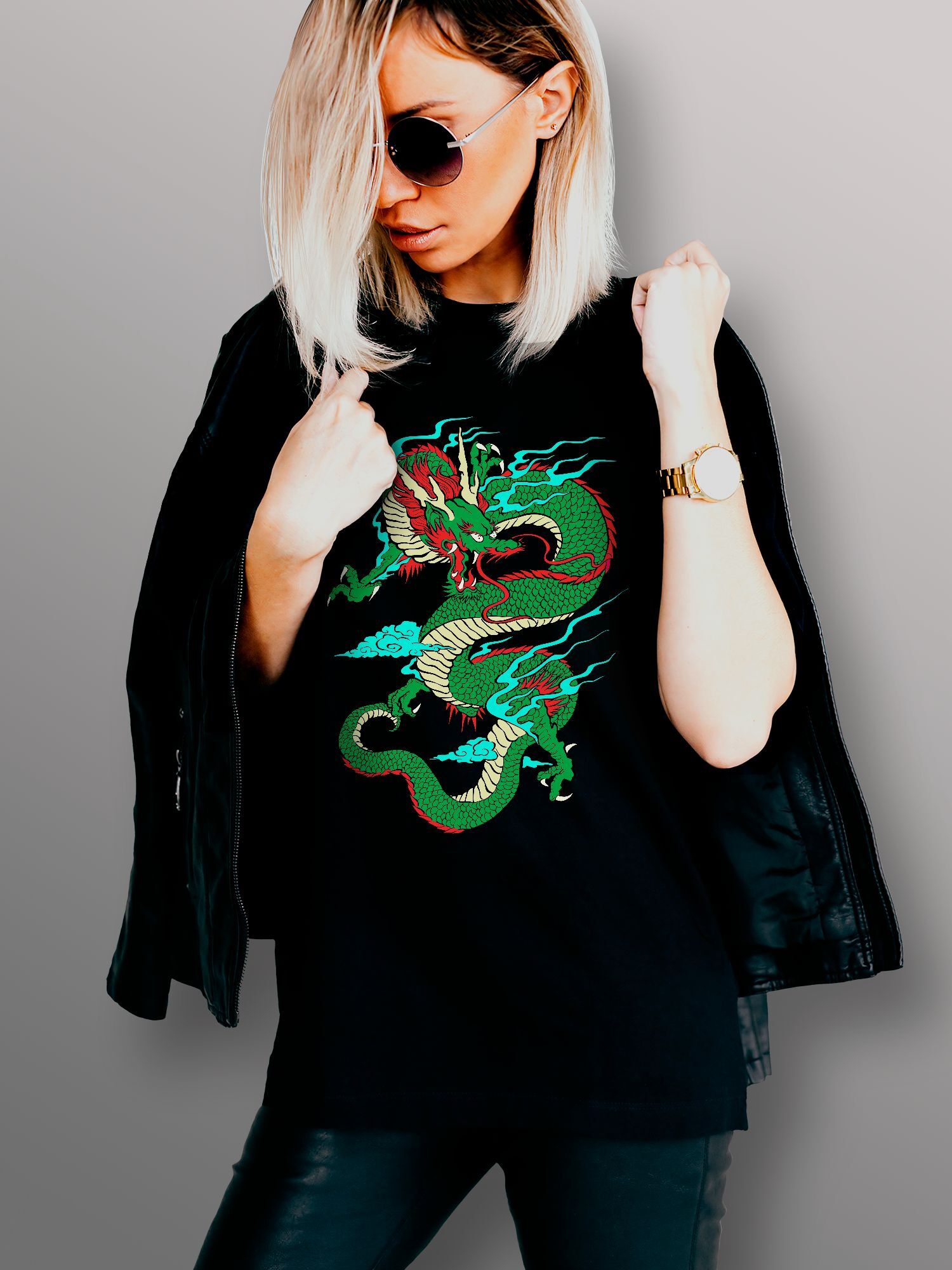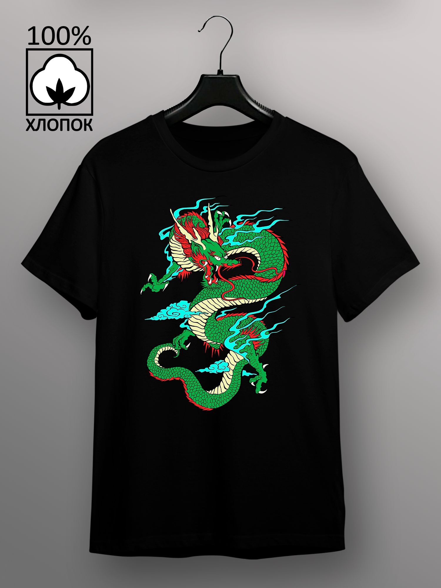 Хлопковая футболка женская с принтом Восточный дракон в облаках