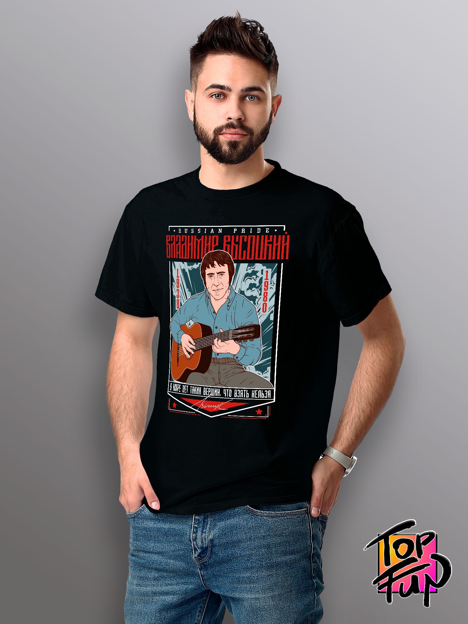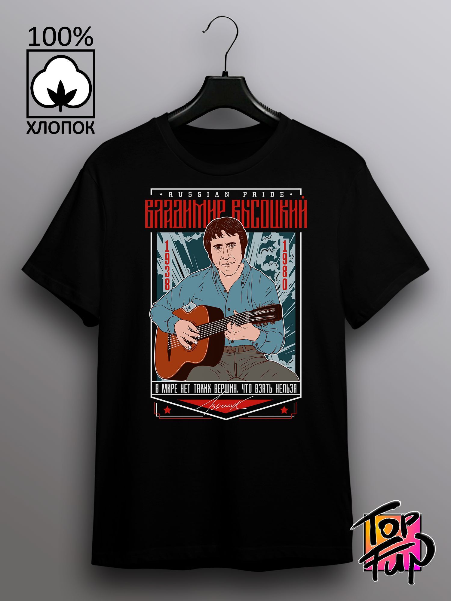 Хлопковая футболка женская с принтом Владимир Высоцкий с гитарой russian pride