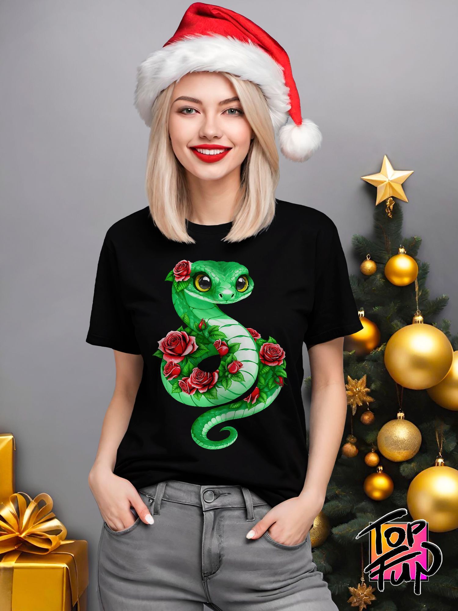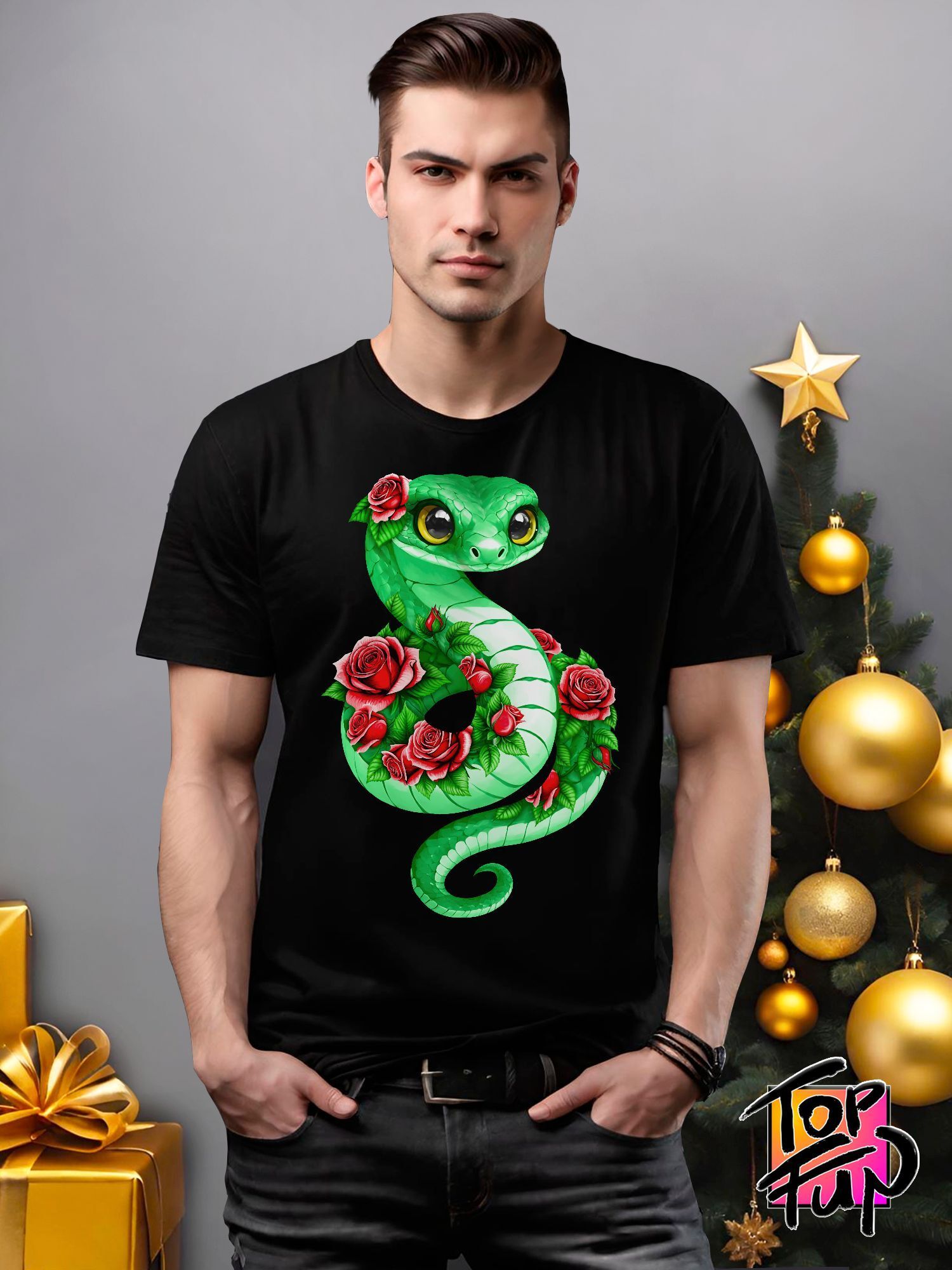 Хлопковая футболка женская новогодняя с принтом символ 2025 года змея, с рисунком милая змейка, зеленая змея в цветах с розами. В нашей коллекции вы найдете разнообразные модели, включая футболка женская, футболка мужская и футболка унисекс, которые идеально подойдут для любого стиля.Наши футболки выполнены из 100% хлопка и обеспечиваю комфорт в течение всего дня.Выберите свою идеальную модель среди нашей коллекции: футболки с приколом и футболки с рисунком, включая уникальные варианты, такие как футболка с мемом и футболка с надписью. Подходящие для работы варианты включают футболки для работы и офиса, которые помогут создать профессиональный, но в то же время стильный образ.Если вы ищете яркую и модную футболку, то вам подойдут такие как однотонная футболка или прикольная футболка, замечательно дополнят ваш гардероб. Для активных людей подойдут спортивные футболки, которые обеспечивают свободу движения и комфорт во время тренировок.Летняя футболка и длинная футболка станут отличным выбором для теплых сезонов, а футболка оверсайз и футболка прямая подарят вам стильный, непринужденный вид. Мы предлагаем футболка для мужчин и футболка для парня, а также разнообразие моделей для девушек и женщин.Для детей у нас представлены стильные футболка для подростка, включая футболка для девочки и футболка для мальчика, которые отличаются яркими цветами и оригинальными принтами.С нашей коллекцией найдете идеальную футболку, которая станет вашим любимым элементом в гардеробе или подарком на любой случай: на новый год, на день рождения, на рождество, так же есть футболки на 8 марта, футболки на 23 февраля, подарок для подруги, для мамы и и бабушки, для папы и брата и многие другие.