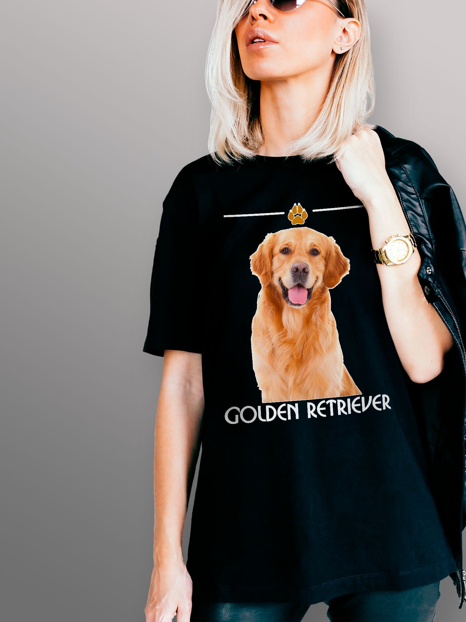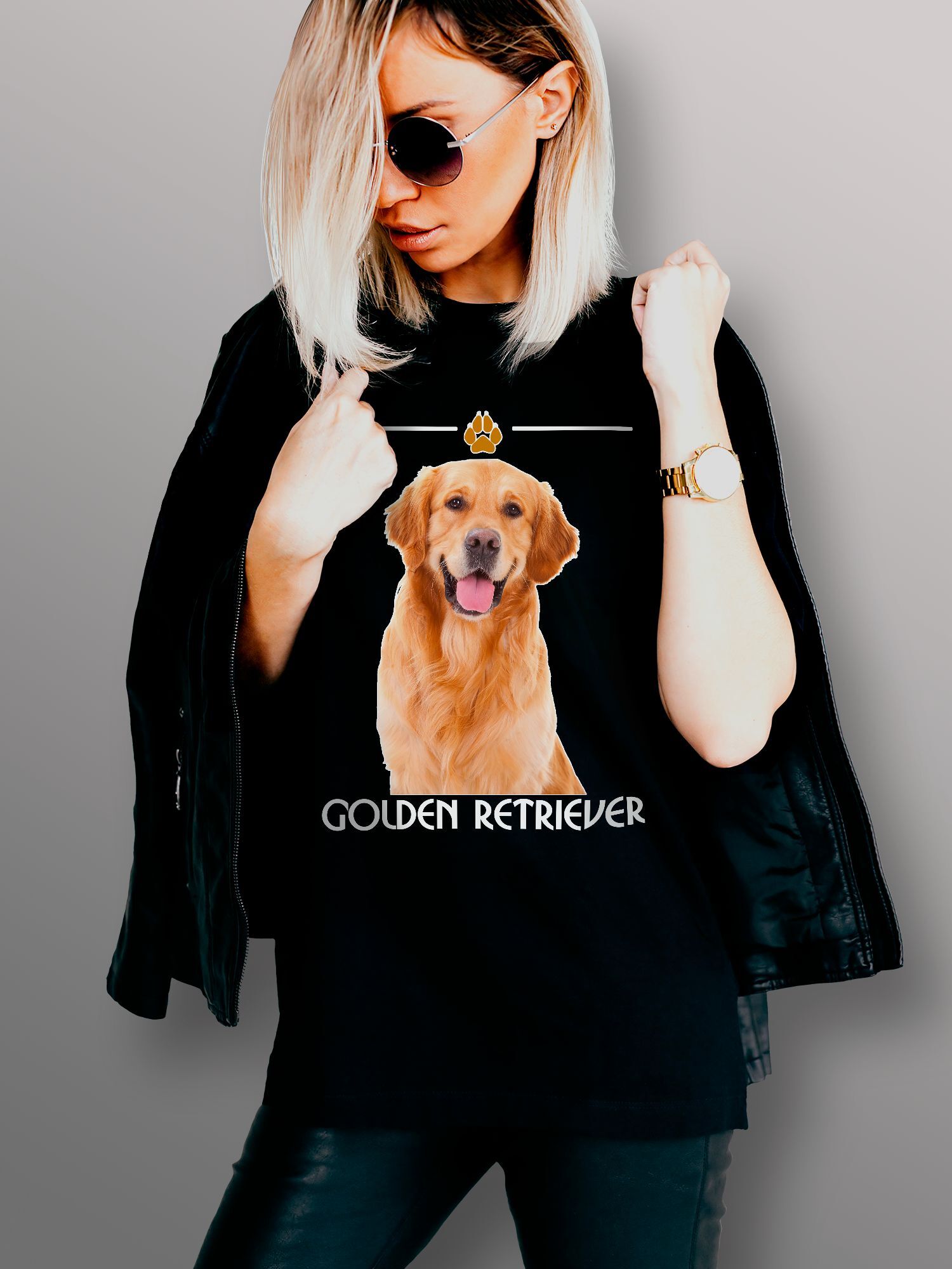 Хлопковая футболка женская с принтом собака породы золотой ретривер