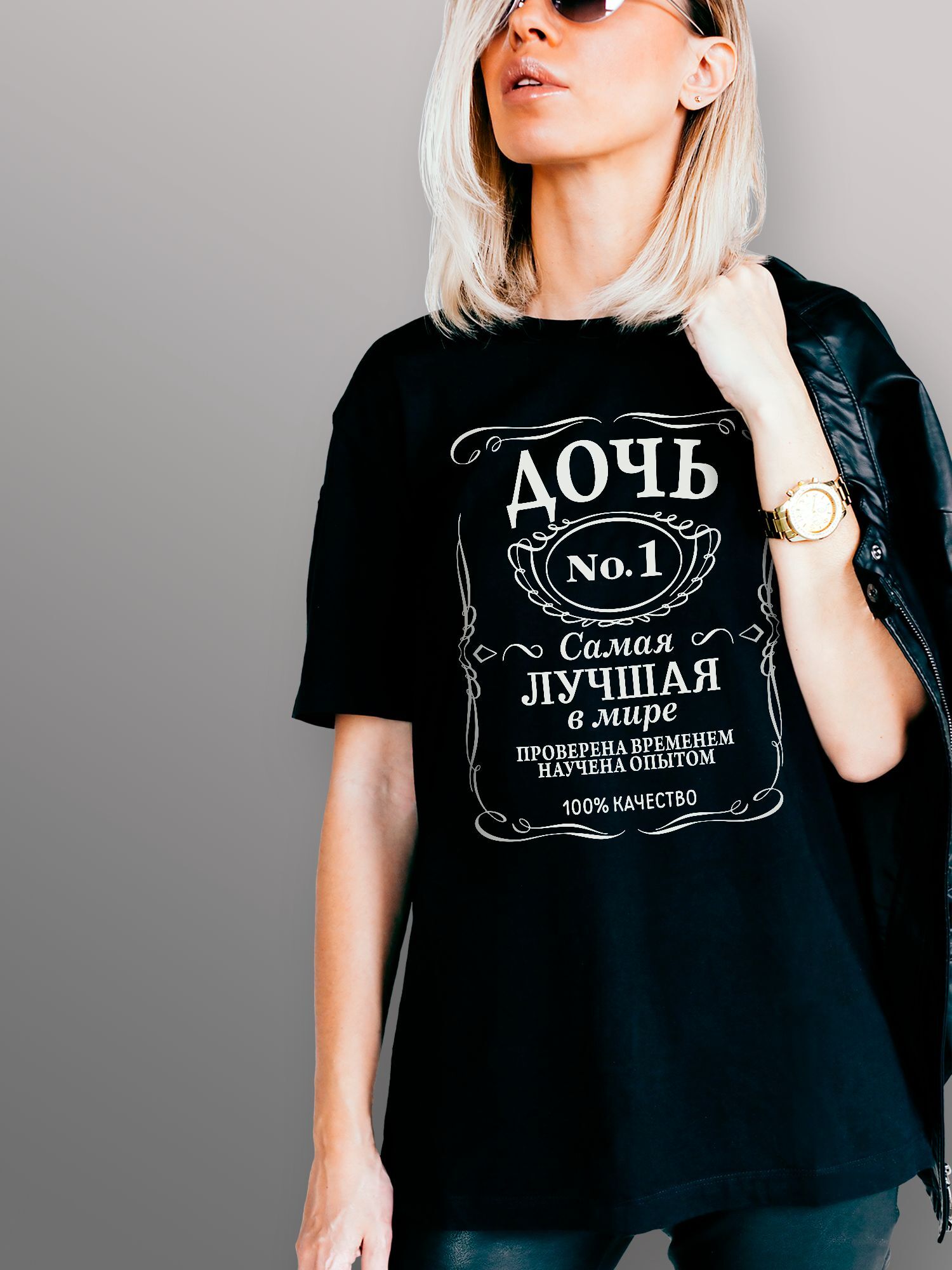 Хлопковая футболка женская с принтом Дочь самая лучшая в мире jack label. Футболки для семьи коллекция парные футболки и семейные футболки.