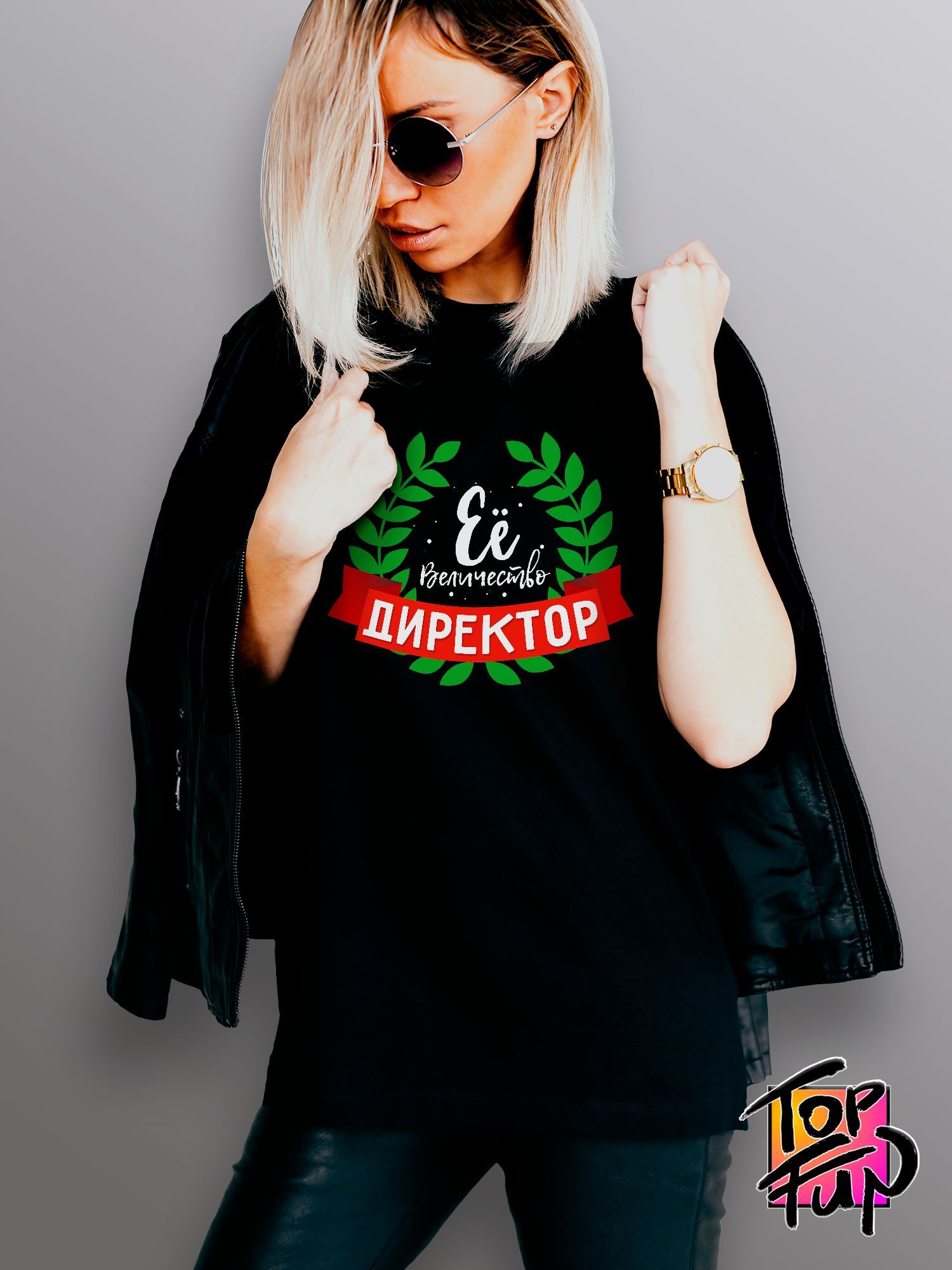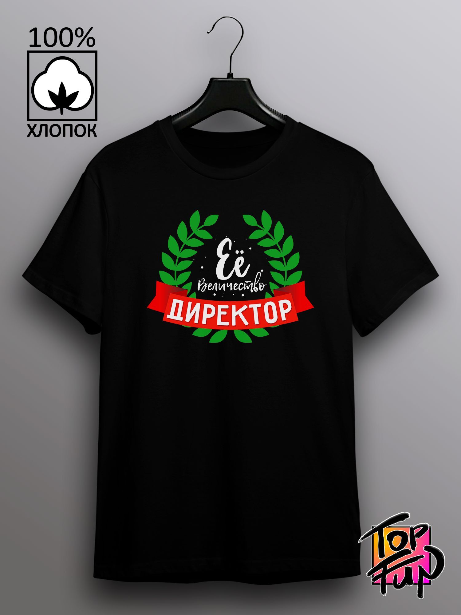 Хлопковая футболка женская с принтом Ее величество директор.