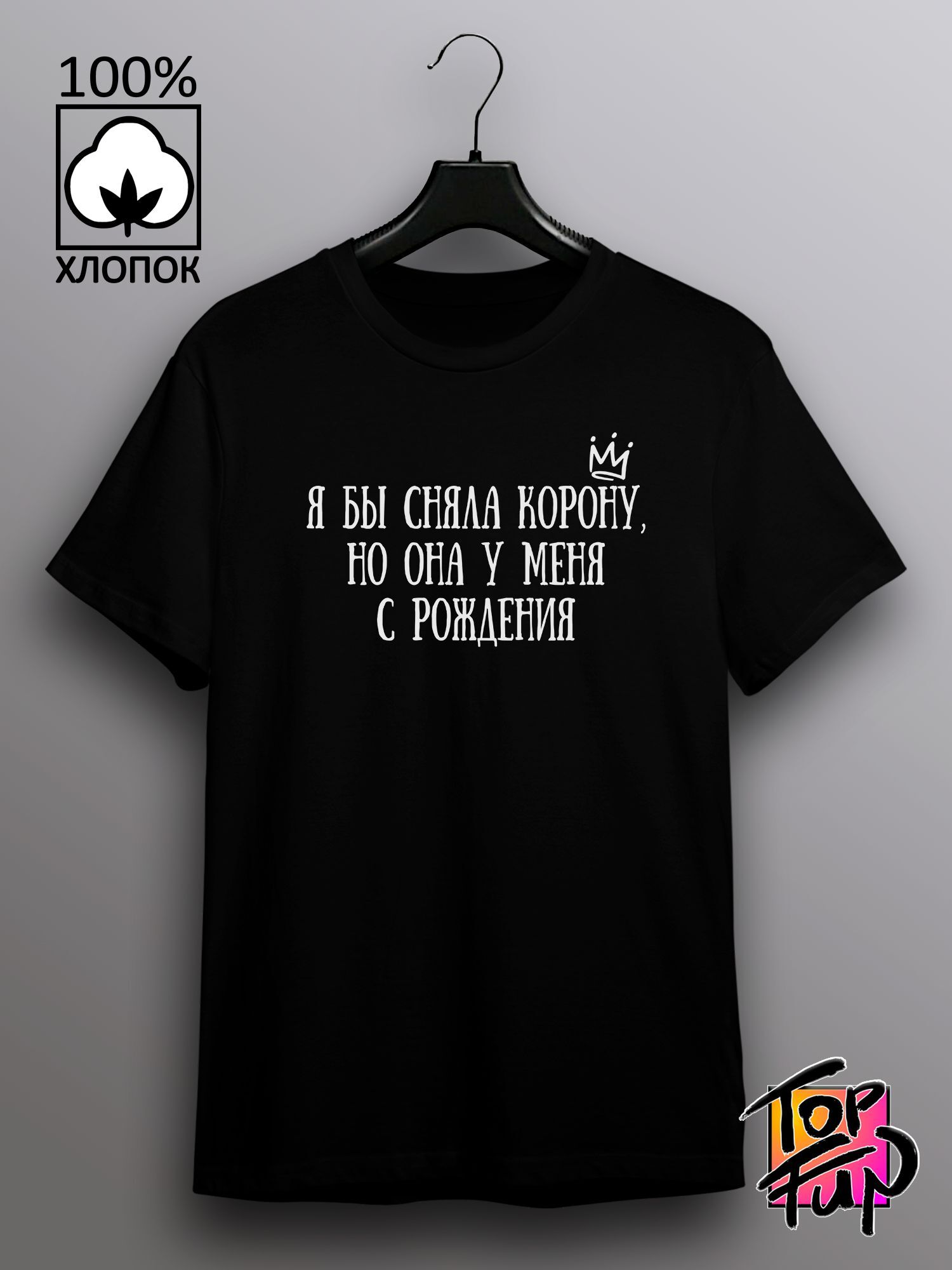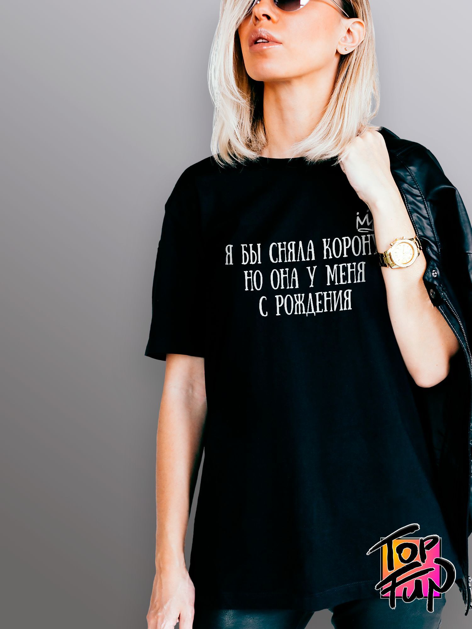 Футболка женская с принтом Я бы сняла корону, но она у меня с рождения