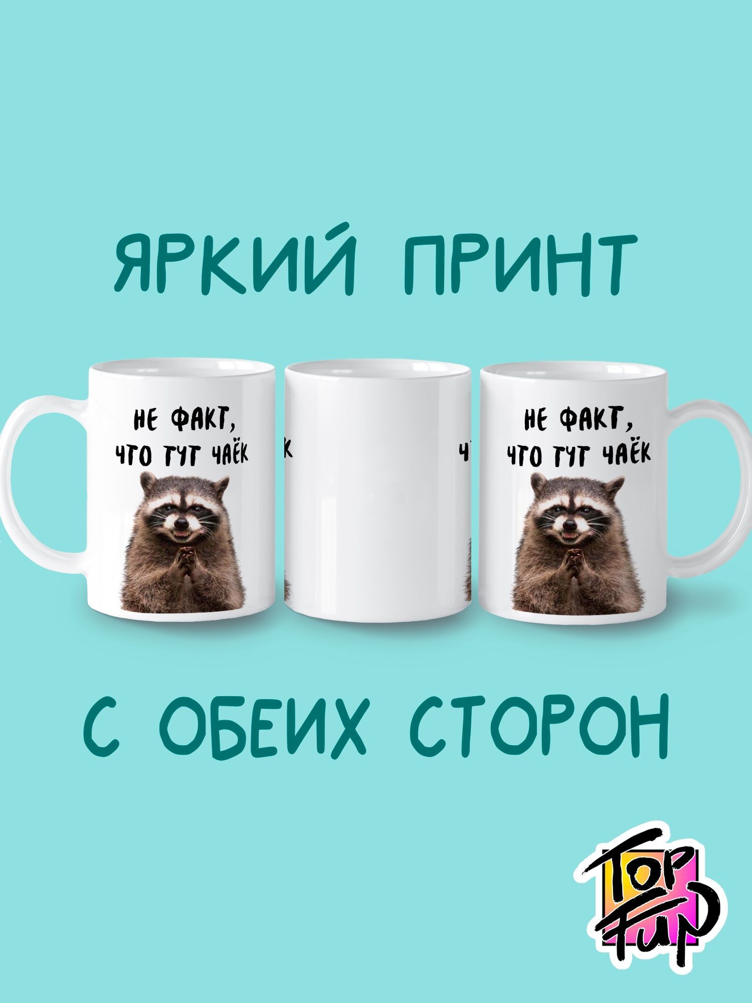 Керамическая кружка с рисунком Не факт что тут чаек енот мем 330 мл. Вы хотите сделать своё утро ярким и наполненным юмором? Тогда мемная кружка вам в этом поможет! Кружка с мемом не только поднимет настроение, но и сделает ваше утро по-настоящему добрым. Вы знаете все современные прикольные тренды? Тогда смело выбирайте наши кружки с принтом и всегда оставайтесь на волне популярности. Интересные мемные чашки можно подарить самому заядлому интернет-пользователю, который постоянно кидает вам новые смешные мемчики! Уверены, такой подарок сможет его удивить. Шуточные надписи на кружке станут отличным началом нового дня! Красивая керамическая кружка станет настоящим украшением любой кухни. Отличный подарок для любимого человека, эта кружка станет вашим верным другом во время чаепитий. Подарочный набор как для мужчин: мужу, папе, брату, парню, дедушке, коллеге, другу, так и для женщин: жене, маме, сестре, бабушке, девушке, подруге, а может и себе. Станет украшением для кухни и любимой кружкой с надписью для чая, кофе. Мы ценим юмор и любим праздники: 14 февраля, 23 февраля, 8 марта, день рождения, Новый год, но всегда можно порадовать себя или близких просто так, без повода. Декоративная чашка с принтом превратит обычное чаепитие в приятное времяпровождение. Большая заварочная кружка подойдет как для горячего кофе, так и холодного чая. Любой напиток в такой чашке станет более изысканным и оригинальным. Кофейная кружка с надписью выполнена из высококачественного материала. Керамика является безопасным гипоаллергенным материалом, который не выделяет токсических веществ. Благодаря этому кружкой спокойно могут пользоваться как взрослые, так и дети. Кружка прикол оснащена удобной ручкой, за счет чего её комфортно держать в руке. Принт нанесен качественным красками, которые не боятся перепадов температур. Именно поэтому заварочная чашка может использовать в посудомоечной машине и микроволновой печи. Уникальные керамические кружки с оригинальным дизайном – лучшее решение для тех, кто ищет недорогой, но действительно классный подарок. Символические подарки чаще всего не вызывают восторга у людей, но это не про нашу кружку! Увидев такой необычный презент люди не смогут сдержать своих эмоций! Интересные сувениры в виде прикольной кружки можно подарить взрослой женщине и мужчине, девушке и парню, коллеге, маме и папе, жене и мужу, брату и сестре, другу и подруге, мальчике и девочке. Кухонная офисная посуда с яркой картинкой идеально подойдет для обеденного перерыва. Кружка гармонично впишется в интерьер любой кухни. Так же подойдёт идеально кружка на работу и в офис. Настроение работника мигом улучшится и его рабочий день пройдет более продуктивно! Крутая, но в то же время эстетичная чашка внесет в интерьер кухни яркости. Такое интерьерное дополнение оценят все гости, независимо от их пола и возраста. Кухонная посуда уже давно вышла за рамки обыденности, поэтому всё чаще молодежь выбирает чайные сервизы и парные кружки с прикольными картинками или надписями. Вашу любимую кружку будет удобно брать с собой на отдых, в командировки и путешествия (ведь никто не захочет расстаться с такой чашечкой!). Вместительная походная кружка объемом 330 мл станет верным спутником, который будет напоминать вам о доме и дарить положительные эмоции. Романтика и лю