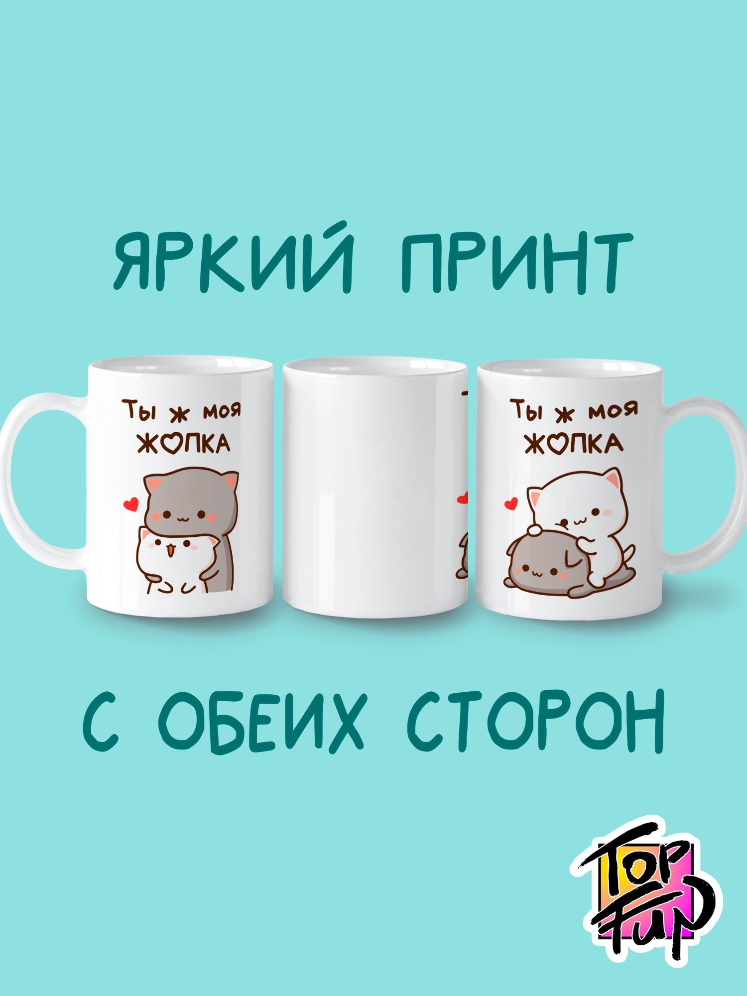 Керамическая кружка с рисунком Ты ж моя жопка котики 330 мл. Вы хотите сделать своё утро ярким и наполненным юмором? Тогда мемная кружка вам в этом поможет! Кружка с мемом не только поднимет настроение, но и сделает ваше утро по-настоящему добрым. Вы знаете все современные прикольные тренды? Тогда смело выбирайте наши кружки с принтом и всегда оставайтесь на волне популярности. Интересные мемные чашки можно подарить самому заядлому интернет-пользователю, который постоянно кидает вам новые смешные мемчики! Уверены, такой подарок сможет его удивить. Шуточные надписи на кружке станут отличным началом нового дня! Красивая керамическая кружка станет настоящим украшением любой кухни. Отличный подарок для любимого человека, эта кружка станет вашим верным другом во время чаепитий. Подарочный набор как для мужчин: мужу, папе, брату, парню, дедушке, коллеге, другу, так и для женщин: жене, маме, сестре, бабушке, девушке, подруге, а может и себе. Станет украшением для кухни и любимой кружкой с надписью для чая, кофе. Мы ценим юмор и любим праздники: 14 февраля, 23 февраля, 8 марта, день рождения, Новый год, но всегда можно порадовать себя или близких просто так, без повода. Декоративная чашка с принтом превратит обычное чаепитие в приятное времяпровождение. Большая заварочная кружка подойдет как для горячего кофе, так и холодного чая. Любой напиток в такой чашке станет более изысканным и оригинальным. Кофейная кружка с надписью выполнена из высококачественного материала. Керамика является безопасным гипоаллергенным материалом, который не выделяет токсических веществ. Благодаря этому кружкой спокойно могут пользоваться как взрослые, так и дети. Кружка прикол оснащена удобной ручкой, за счет чего её комфортно держать в руке. Принт нанесен качественным красками, которые не боятся перепадов температур. Именно поэтому заварочная чашка может использовать в посудомоечной машине и микроволновой печи. Уникальные керамические кружки с оригинальным дизайном – лучшее решение для тех, кто ищет недорогой, но действительно классный подарок. Символические подарки чаще всего не вызывают восторга у людей, но это не про нашу кружку! Увидев такой необычный презент люди не смогут сдержать своих эмоций! Интересные сувениры в виде прикольной кружки можно подарить взрослой женщине и мужчине, девушке и парню, коллеге, маме и папе, жене и мужу, брату и сестре, другу и подруге, мальчике и девочке. Кухонная офисная посуда с яркой картинкой идеально подойдет для обеденного перерыва. Кружка гармонично впишется в интерьер любой кухни. Так же подойдёт идеально кружка на работу и в офис. Настроение работника мигом улучшится и его рабочий день пройдет более продуктивно! Крутая, но в то же время эстетичная чашка внесет в интерьер кухни яркости. Такое интерьерное дополнение оценят все гости, независимо от их пола и возраста. Кухонная посуда уже давно вышла за рамки обыденности, поэтому всё чаще молодежь выбирает чайные сервизы и парные кружки с прикольными картинками или надписями. Вашу любимую кружку будет удобно брать с собой на отдых, в командировки и путешествия (ведь никто не захочет расстаться с такой чашечкой!). Вместительная походная кружка объемом 330 мл станет верным спутником, который будет напоминать вам о доме и дарить положительные эмоции. Романтика и любовь – 